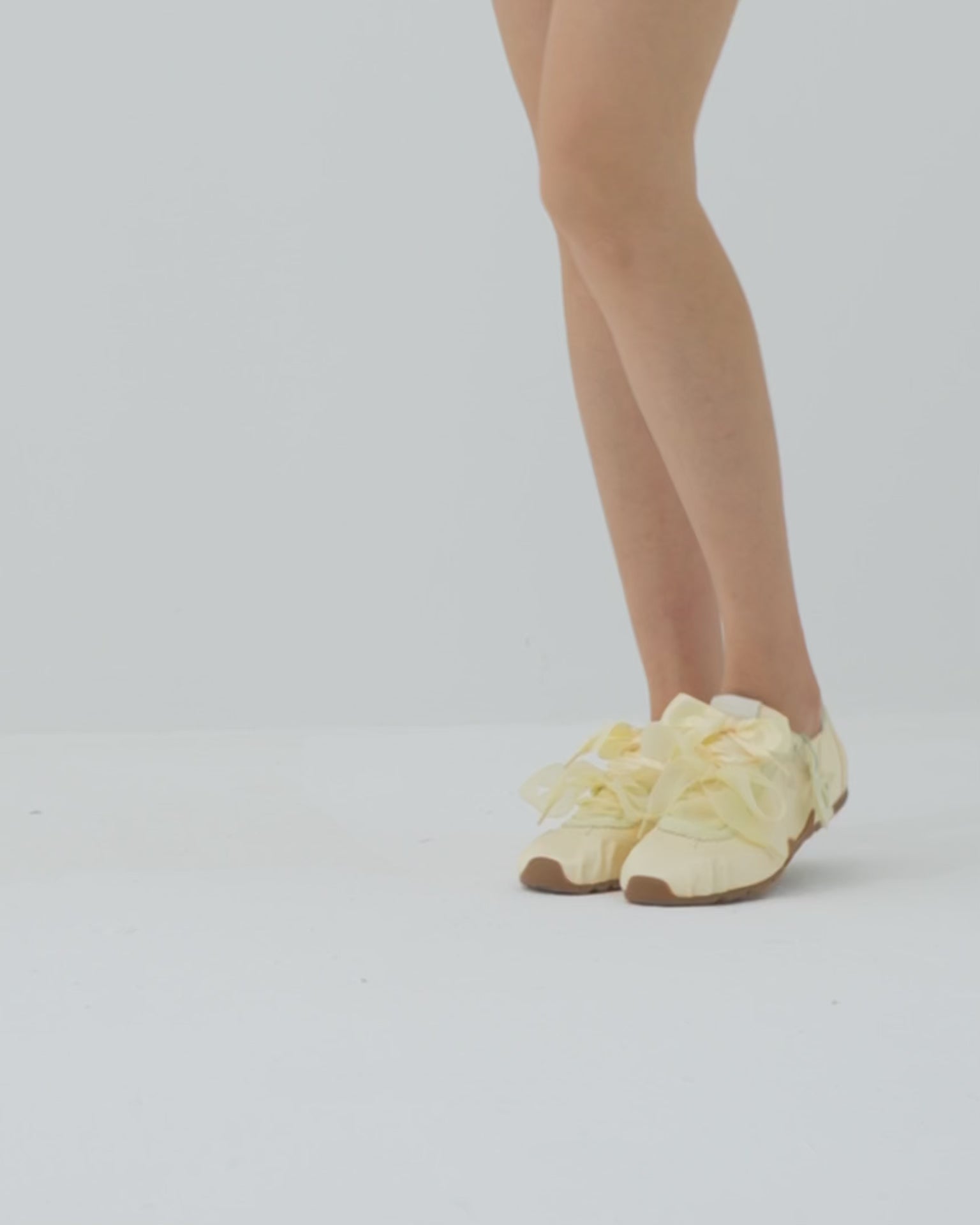 Meet Adorable: our stylish ballet sneaker blending silk satin and suede with a removable wolfe head logo. Features distinctive two-tone ribbon laces with extras included. Effortlessly chic in pastel yellow satin. We recommend using our protective water and stain repellent which can be purchased on our website.