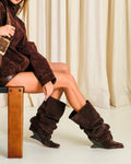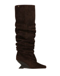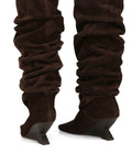 Meet Allie, our latest under-the-knee boot featuring a tapered square toe and an expertly sewn scrunch detail in soft suede. It rests on a 70mm heel and is enhanced with a sprayed semi-matte finish for an understated yet luxurious appeal.