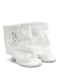 Cut to just above the ankle with a sharp asymmetric toe, this boot redefines balance and proportion. The sculptural 90mm heel lifts the silhouette with ease, creating a confident line that moves seamlessly from day into night. Minimal yet directional, it’s a statement in understatement — a modern essential designed to anchor a considered wardrobe.