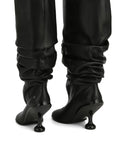 Boho, Embrace bold style with our Under-the-Knee Baggy Scrunch Boot in White Nappa Prince Leather, featuring a distinctive 9cm custom Naked Wolfe heel and a round asymmetrical toe shape. Crafted for those who love unique designs, these boots combine avant-garde flair with luxurious comfort. Perfect for making a fashion statement, they elevate any ensemble with their striking silhouette and premium leather craftsmanship.