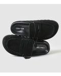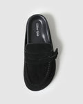 The Cordless Black Hairy Cow Suede mule features a premium hairy cow suede upper complemented by a full leather lining for lasting comfort. It's asymmetric toe design delivers impact, while the plush footbed provides comfort all day. Finished with a custom micro-cell Naked Wolfe outsole, this mule perfectly balances refined style with superior support.