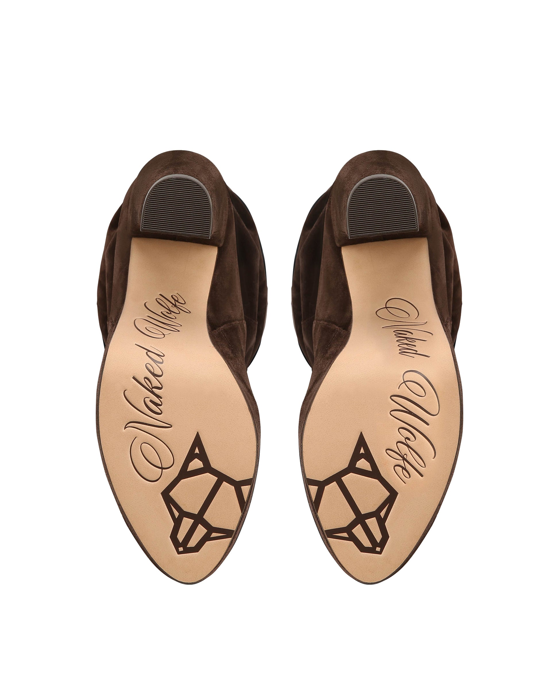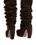 Meet Dallas, our statement knee-high boot crafted in rich brown suede with a soflty slouched silhouette. Resting on a sculptural block heel with a bold platform base, it blends retro glamour with modern edge. A true wardrobe hero, designed to elevate day-to-night dressing.