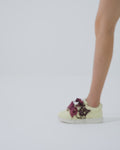Engineered for impact. The Expense sneaker features a precision-cut suede upper paired with a calf hair logo and detachable Wolfe head patch for modular styling. Double ribbon laces offer a structured fit, while a breathable mesh lining and custom-moulded sock design enhance comfort and airflow. Finished in a tonal pastel yellow and burgundy colour way, it sits on a high-performance PU and rubber outsole with integrated Naked Wolfe branding for traction and durability.