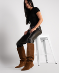 Introducing Keria, our ultimate relaxed slouch boot. Crafted from premium suede and featuring a comfortable 30mm custom Naked Wolfe pin heel, this boot combines classic style with a modern twist offering a sleek silhouette and unique heel design. Perfect for everyday wear or special occasions, it effortlessly elevates your look with its timeless appeal and impeccable craftsmanship.