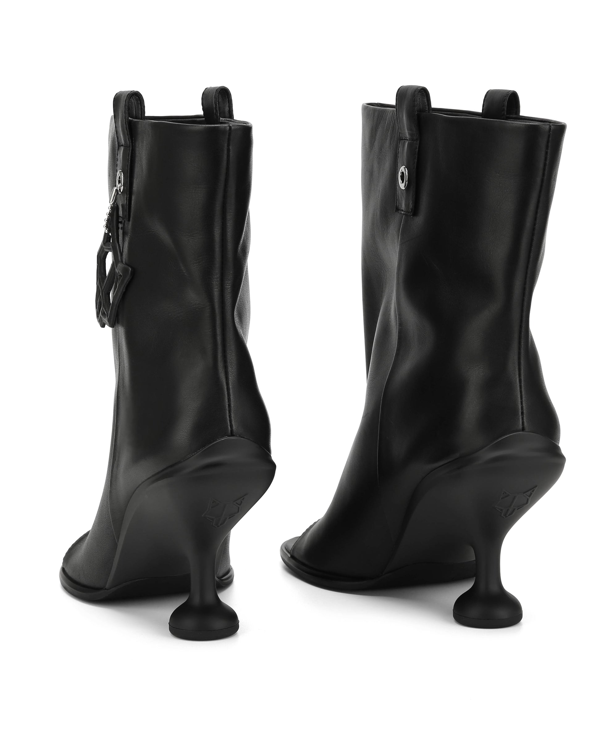 Introducing Kindly, our above ankle open toe boot, available in both suede and leather options. Featuring a striking 9cm custom Naked Wolfe heel and a round asymmetrical toe shape, these boots blend contemporary design with luxurious comfort, offering a unique twist on classic footwear. Perfect for making a bold fashion statement, they elevate any outfit with their distinctive silhouette and premium craftsmanship.