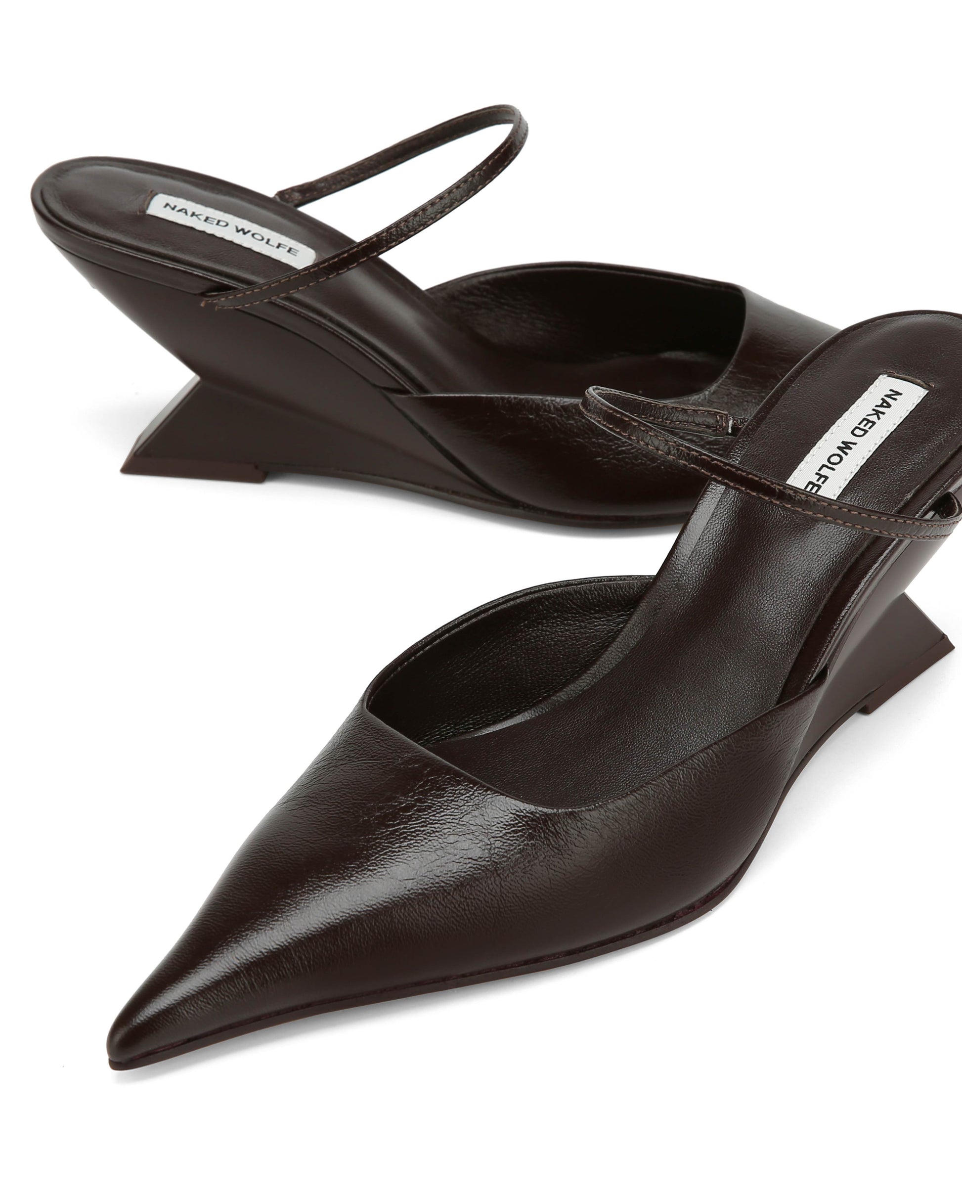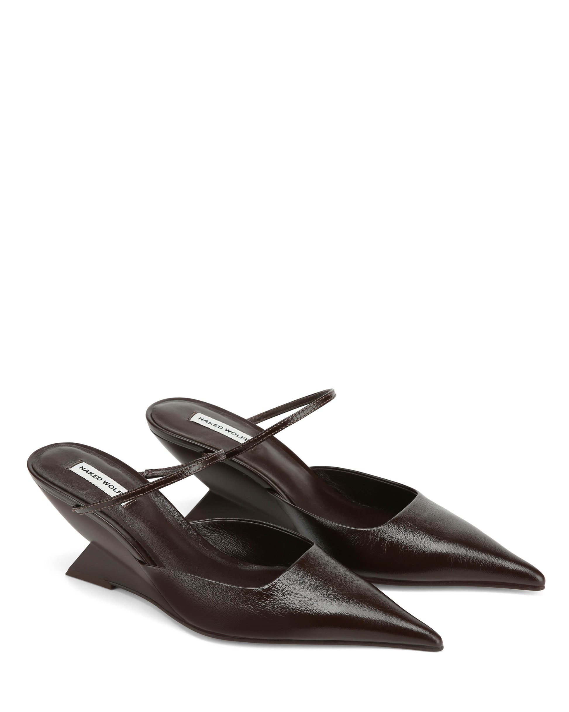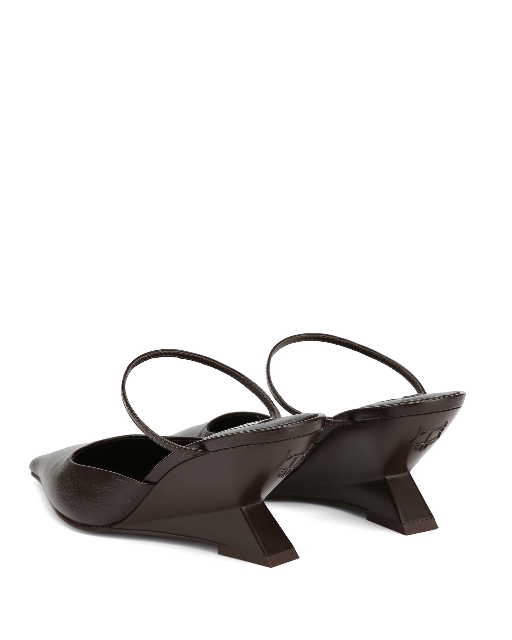 Introducing our new point wedged heel, Salem. This heel comes both a mix of leathers, luxurious brown leather and a new cracked leather. The sexy and sophisticated cut of this upper is flattering and perfect for day and night wear. The upper features a thin instep strap for perfect fitting. With a sleek point toe shape and an angular wedge mould featuring discreet branding, this heel balances style and modern design. The 70mm heel height and full leather insole ensure both comfort and durability.