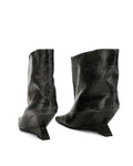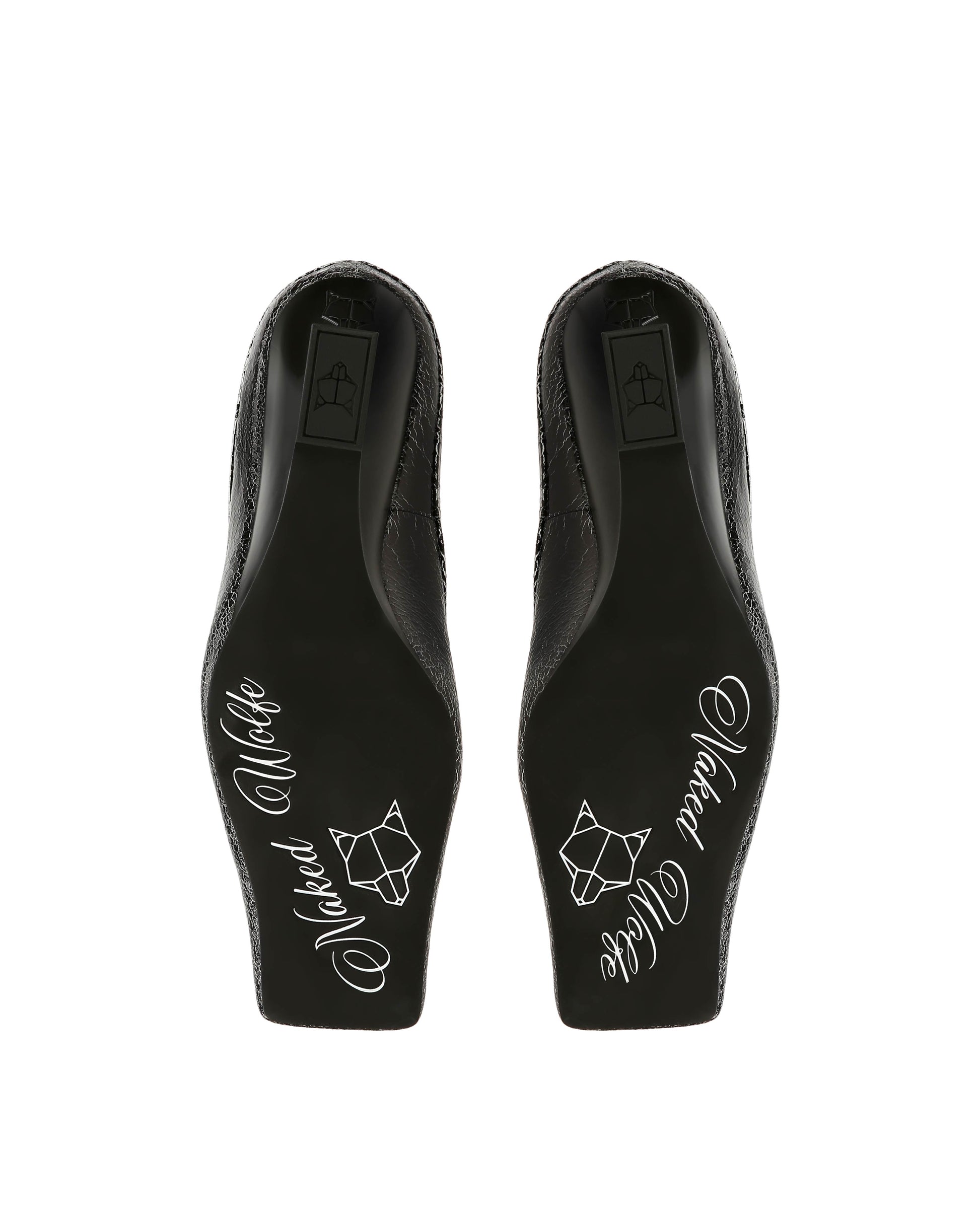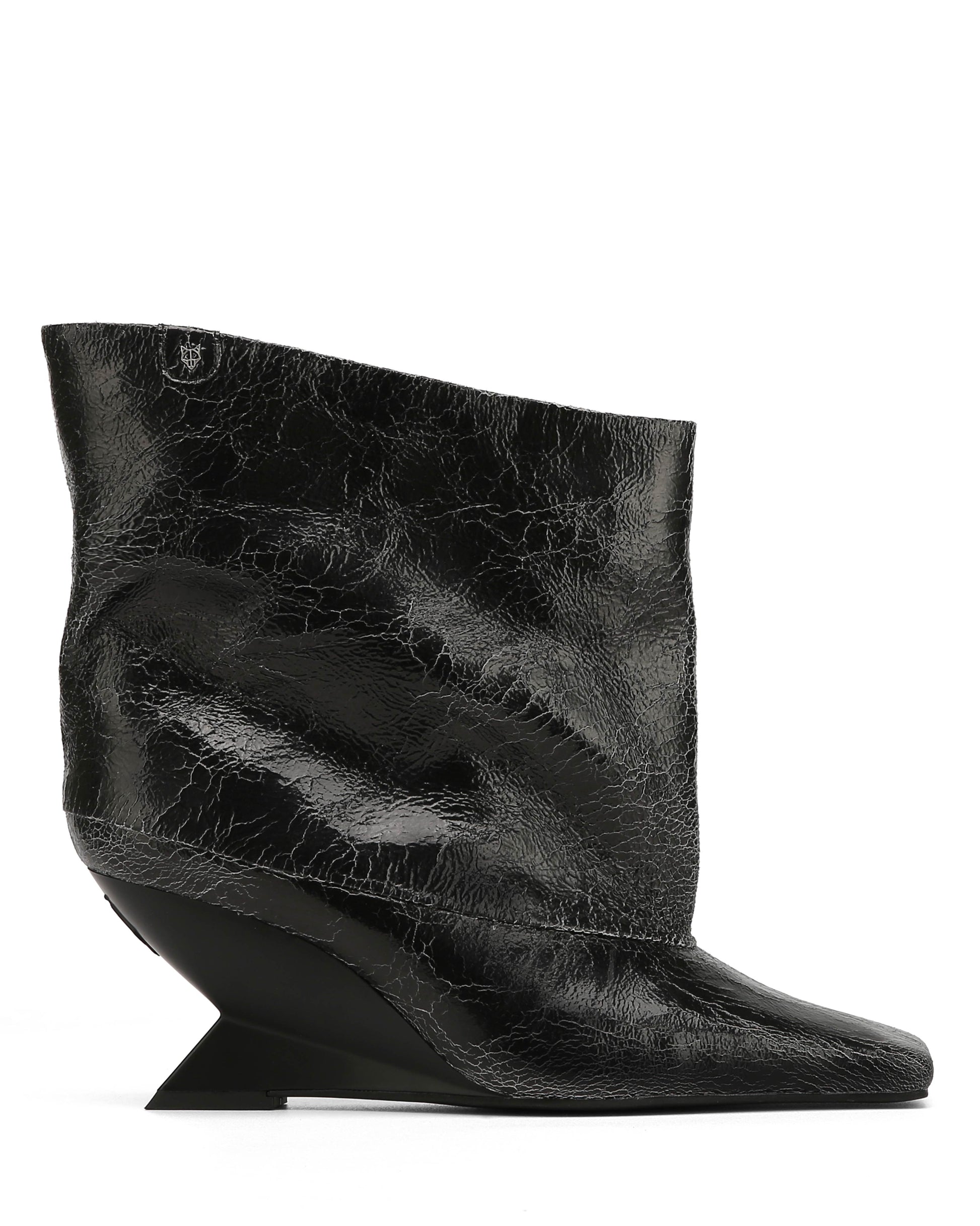 Shade is an above-ankle boot defined by sharp precision and modern texture. A square chiselled toe and cracked leather surface set against a 70mm matte-sprayed heel create a silhouette that feels both architectural and understated. Finished with a stainless steel logo on the upper, it’s a study in elevated edge.