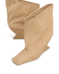 Shade is an above-ankle boot defined by sharp precision and modern texture. A square chiselled toe and suede upper surface set against a 70mm matte-sprayed heel create a silhouette that feels both architectural and understated. Finished with a stainless steel logo on the upper, it’s a study in elevated edge.