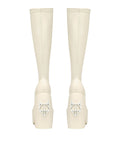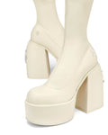 Under the knee skin hugging platform 90’s inspired boot made with a vegan friendly leg hugging stretch upper material on a custom designed Naked Wolfe platform and heel construction. Featuring our Naked Wolfe “wolfe” head plaque on the heel and a metal “wolfe” head plaque embedded into the heel.