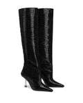 Introducing the Texas boot from Naked Wolfe, a striking pointed-toe heeled boot designed to make a statement. Featuring a custom-made 9cm heel with a unique Wolfe head design at the back, this boot combines boldness wit