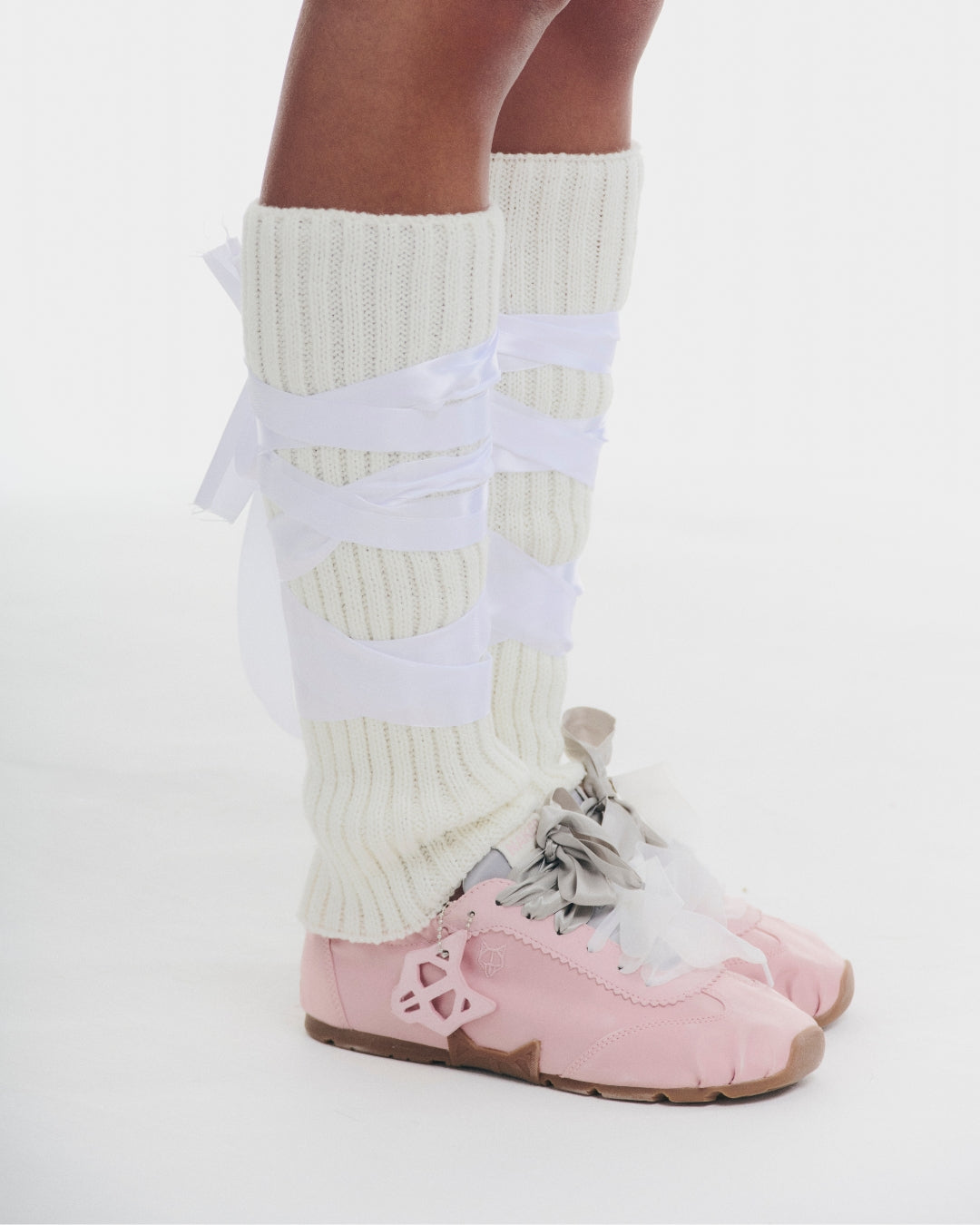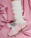 Meet Adorable: our stylish ballet sneaker blending silk satin and suede with a removable wolfe head logo. Features distinctive two-tone ribbon laces with extras included. Effortlessly chic in pink satin. We recommend using our protective water and stain repellent to protect the fabric.