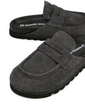 The Cord Mule. Made from hairy cow suede uppers and soft tumbled pebble leather. Designed with a custom exaggerated last shape that pairs perfectly with flowy or baggier pants. Features an ultra-soft custom leather footbed, finished with a micro-cell custom Naked Wolfe outsole.