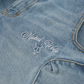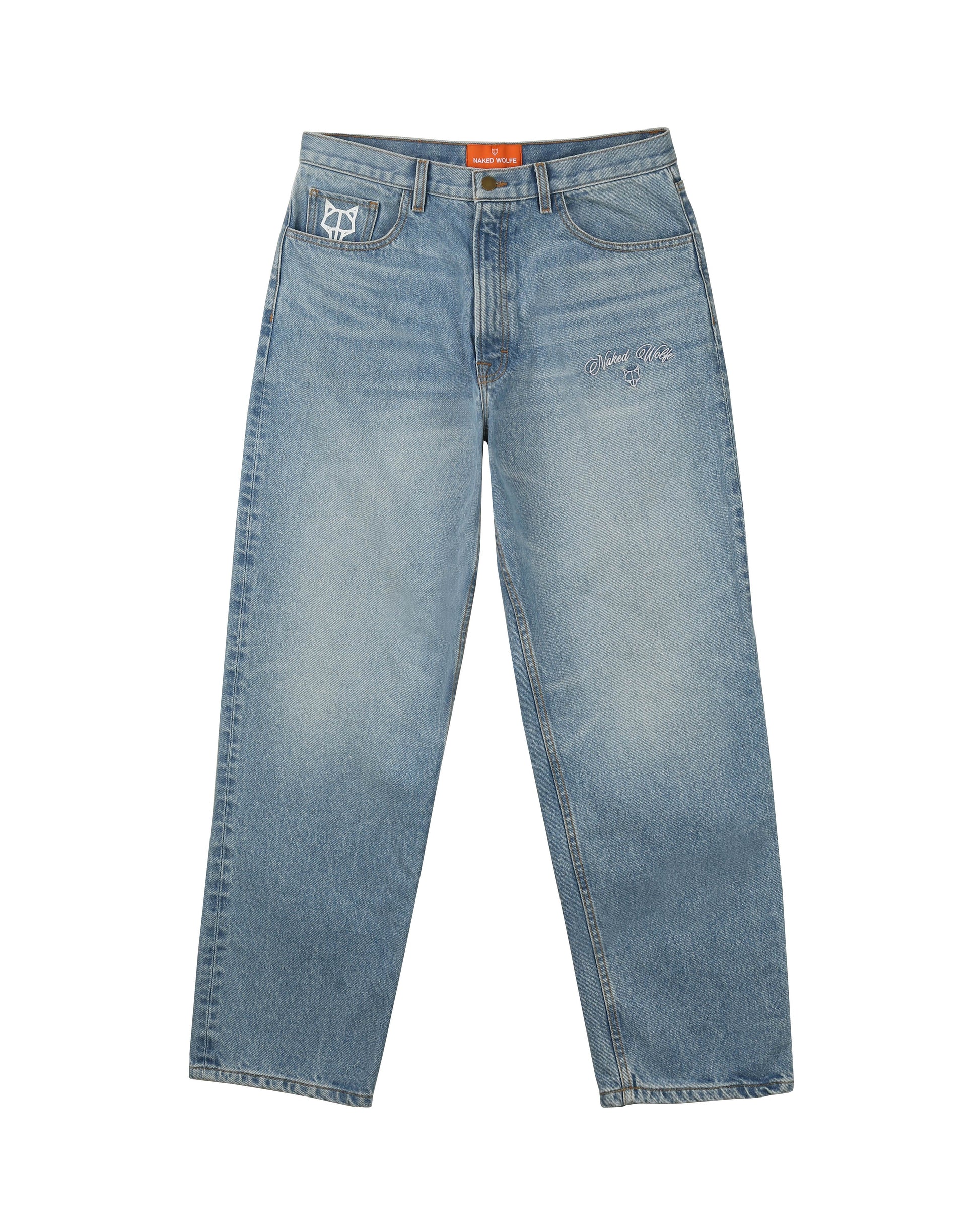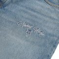 - Barbed-wire print on the back pockets and signature embroidery on the front leg
