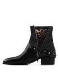 Step into rebellion with Naked Wolfe's latest creation—a bold fusion of 80's punk rock attitude and luxury craftsmanship. Featuring a full leather upper and fierce leopard print satin lining, this boot is designed to stand out. The leather stack heel adds height and edge, while the custom Naked Wolfe print on the outsole ensures every step makes a statement. Complete with a custom buckle, this boot is more than just footwear—it's a symbol of unapologetic style and individuality.