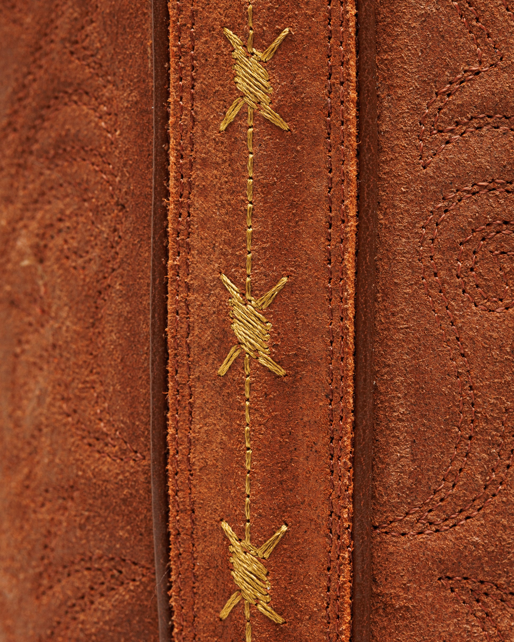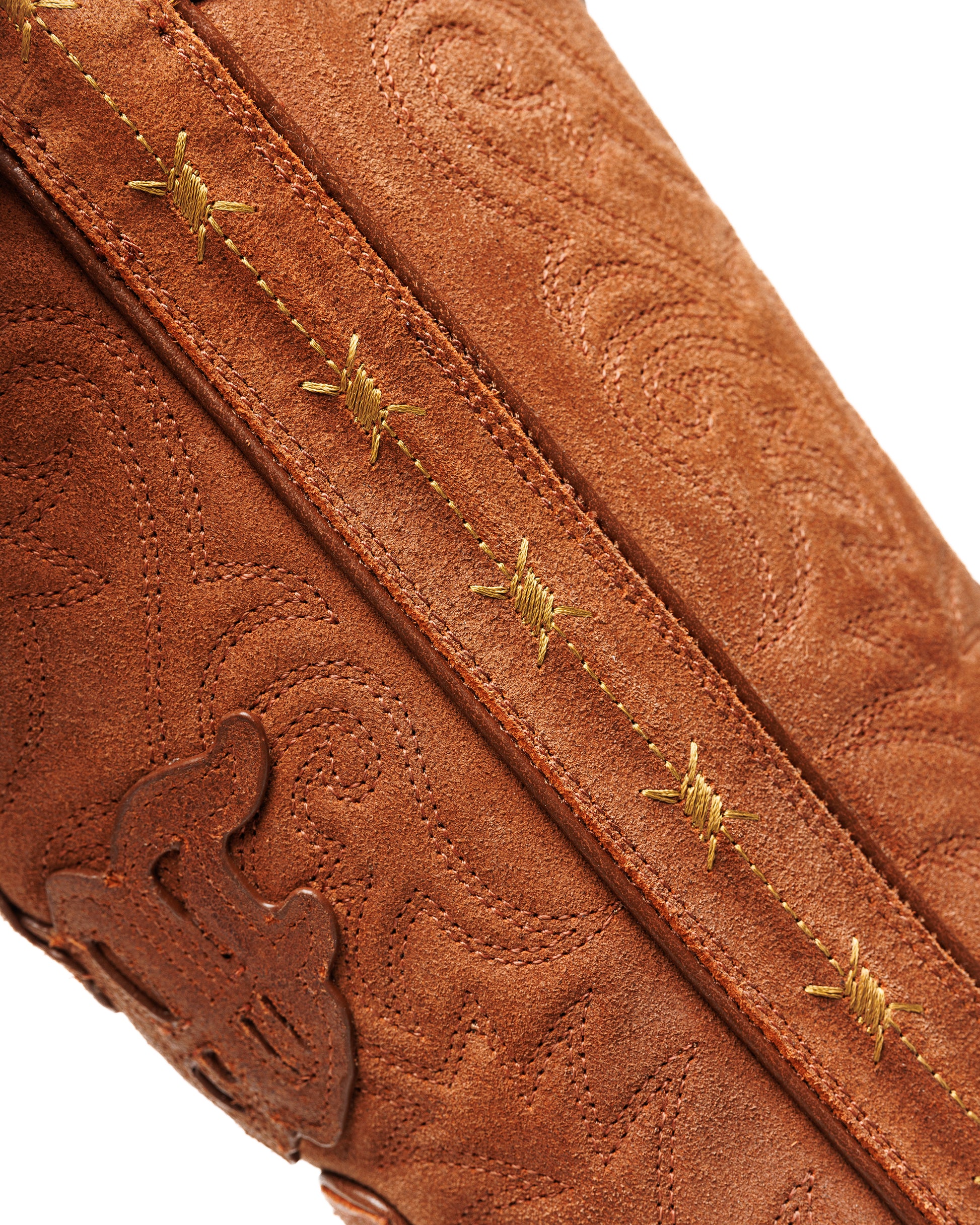 The outlaw boot also comes with custom barbed wire embroidery stitch.