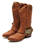 The Outlaw boot has taken inspiration from old famous "outlaws" and how they personalised their boots. The outlaw boot comes with a removable belt with a distressed dipped NW buckle.