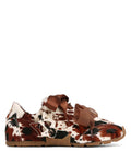 Meet Adorable: our stylish ballet sneaker in cow print calf hair with a removable wolfe head logo. Features distinctive two-tone ribbon and chiffon laces with extras included. We recommend using our protective water and stain repellent which can be purchased.