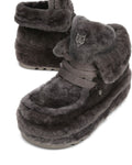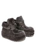 Bambi, the new boot from Naked Wolfe, a perfect blend of luxury and edge. This boot features a premium shearling wool, ideal for colder weather. With a 60mm heel height and a chunky super light tread. The design is enhanced by 15mm width laces, an embossed Wolfe head on the tongue, and an embossed logo on the back tape. A small Wolfe head pin at the side adds a distinctive touch, making the Bambi boot a standout piece in any winter wardrobe.