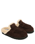 The Cord Mule. Made from hairy cow suede uppers and lined with cozy shearling wool. Designed with a custom exaggerated last shape that pairs perfectly with flowy or baggier pants. Features an ultra-soft custom leather footbed, finished with a micro-cell custom Naked Wolfe outsole.