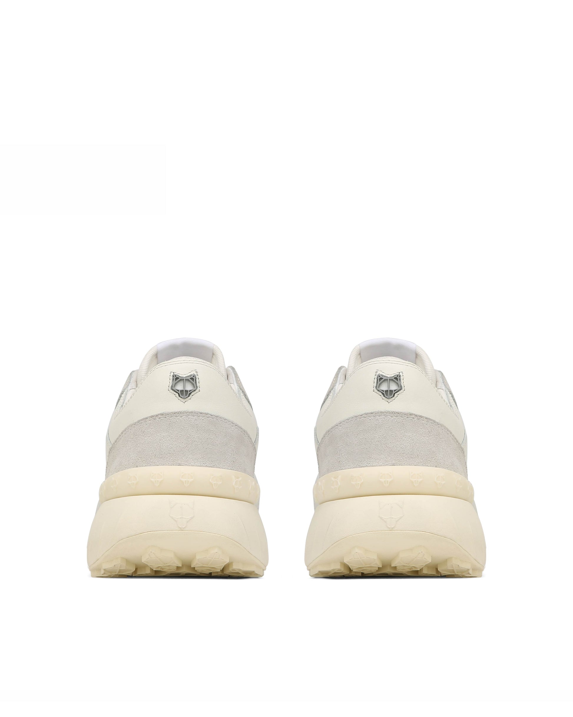 Introducing Dart Triple White - The newest sneaker to our range featuring a new custom cow suede, cow leather and soft nylon upper on a treaded phylon sole. Includes a rubber branded wolfe head on back counter, 3D printed wolfe heads on mesh side panel, and a custom grosgrain tongue label. This style is accented with our branded leather supportive insole sock, and thick woven round lace.