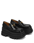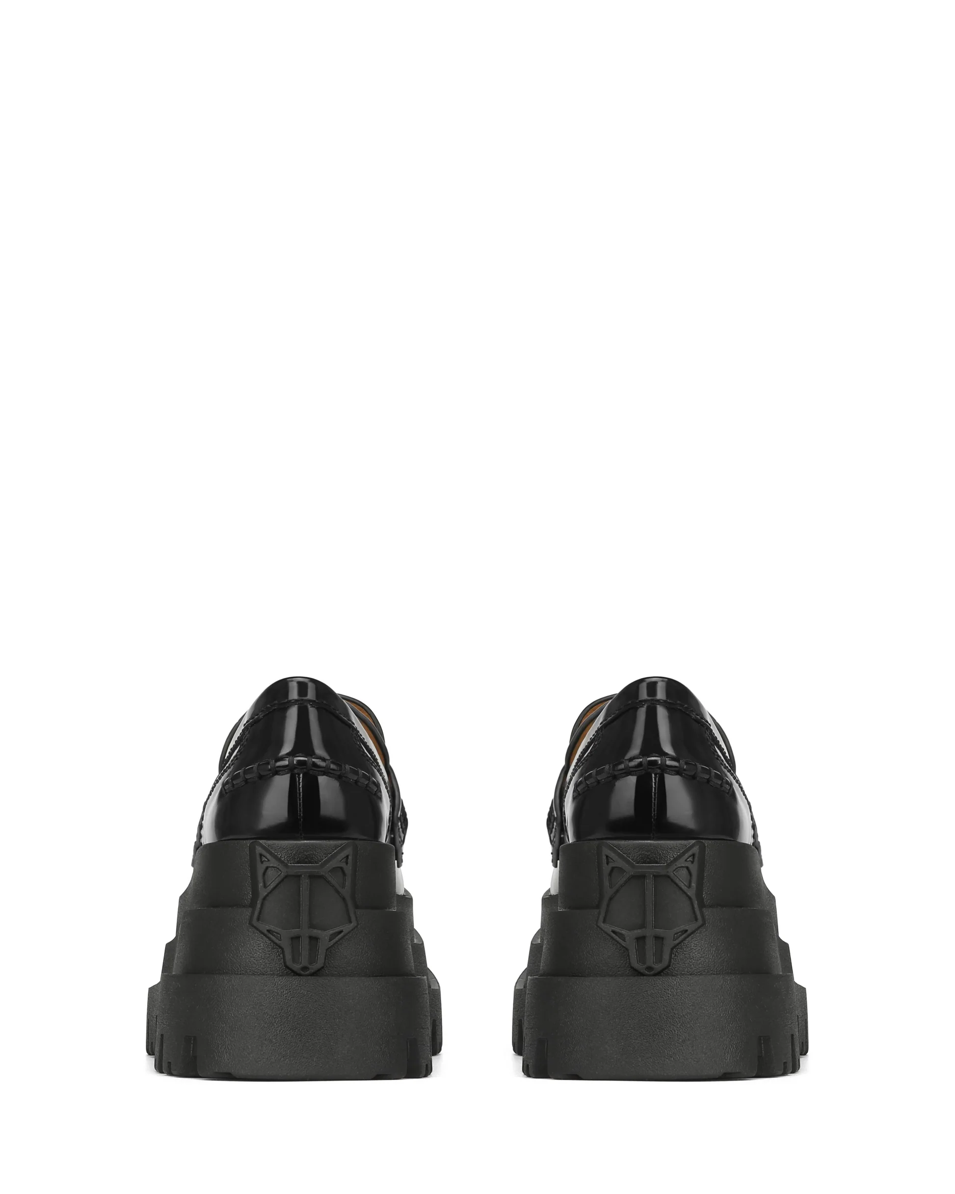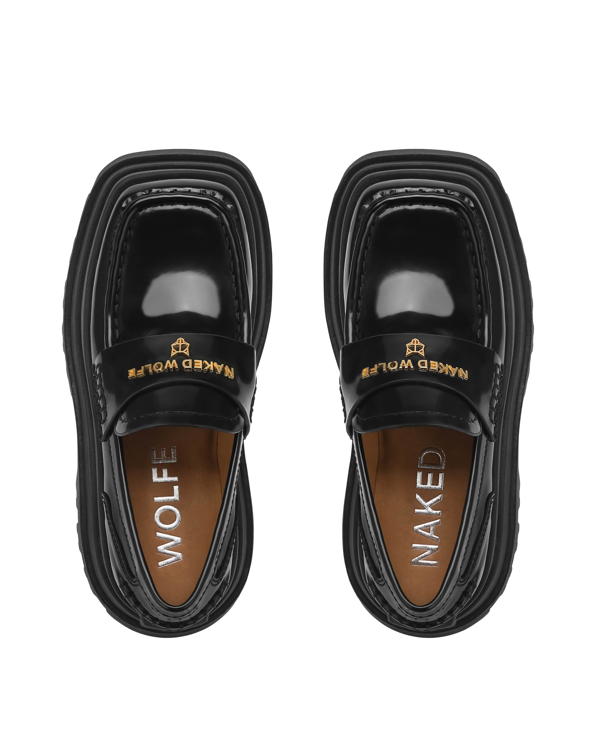 Delusion is our new chunky loafer made with a full leather upper and sock. This classic loafer design is on our custom designed three-tier platform with a bold square toe. This new edition loafer has a brand new branded metal plaque in a gold finish. Delusion runs small, we recommend sizing up a half size.