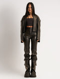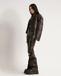 Introducing Disturb, our latest 90mm chunky boot with an asymmetric toe shape, designed for those who appreciate bold fashion statements. This boot features a wide leg fit for comfort and style, complemented by a distinctive Wolfe head ball charm for ad