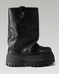 Introducing Disturb, our latest 90mm chunky boot with an asymmetric toe shape, designed for those who appreciate bold fashion statements. This boot features a wide leg fit for comfort and style, complemented by a distinctive Wolfe head ball charm for added flair. It also includes new rubber toe and heel pieces, combining durability with a modern aesthetic. Perfect for trendsetters seeking both edge and elegance, this boot is a must-have for any fashion-forward wardrobe.