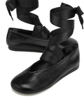 Experience luxury with Purr, our asymmetrical slip-on ballet flat with a detachable and interchangeable ribbon leg tie, featuring a 4mm outsole and a leather insole. Crafted from premium black leather.