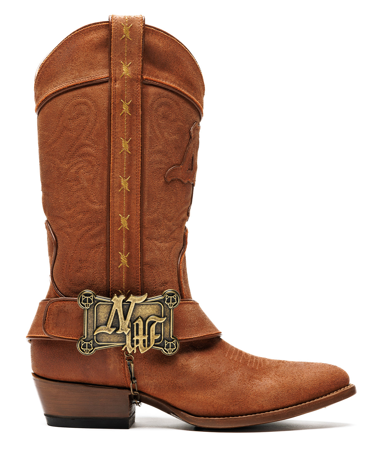 The Outlaw boot has taken inspiration from old famous "outlaws" and how they personalised their boots. The outlaw boot comes with a removable belt with a distressed dipped NW buckle.