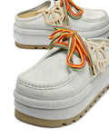 Introducing the Blizzard slip-on from Naked Wolfe, a backless shoe that combines luxury and modern comfort. Crafted from high quality distressed denim, it features a high quality leather lining and a leather sock for exceptional comfort. The shoe boasts a 60mm heel height and a chunky super light tread for an elevated look. Thick multi coloured laces, with an embossed logo and a big Wolfe head key chain enhance its distinctive design. Perfect for making a statement, the Blizzard slip-on is a must-have addition to your footwear collection.