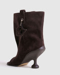 Introducing Kindly, our above ankle open toe boot, available in both suede and leather options. Featuring a striking 9cm custom Naked Wolfe heel and a round asymmetrical toe shape, these boots blend contemporary design with luxurious comfort, offering a unique twist on classic footwear. Perfect for making a bold fashion statement, they elevate any outfit with their distinctive silhouette and premium craftsmanship.