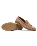 Inspired by the charm of a small seaside town in Italy, Ravello is the latest loafer release for Spring/Summer 2025. This new silhouette features our signature fringe and penny loafer trim, reimagined with a lower profile heel and a brand new custom rubber outsole for added comfort and durability. Fully lined in leather, Ravello is crafted from premium Italian suede and offered in three rich Italian leather colorways.