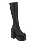 Introducing Spice, our under the knee skin hugging platform 90’s inspired boot. Made with a vegan friendly leg hugging stretch upper material on a custom designed Naked Wolfe platform and heel construction. Featuring our Naked Wolfe “wolfe” head plaque on the heel and a metal “wolfe” head plaque