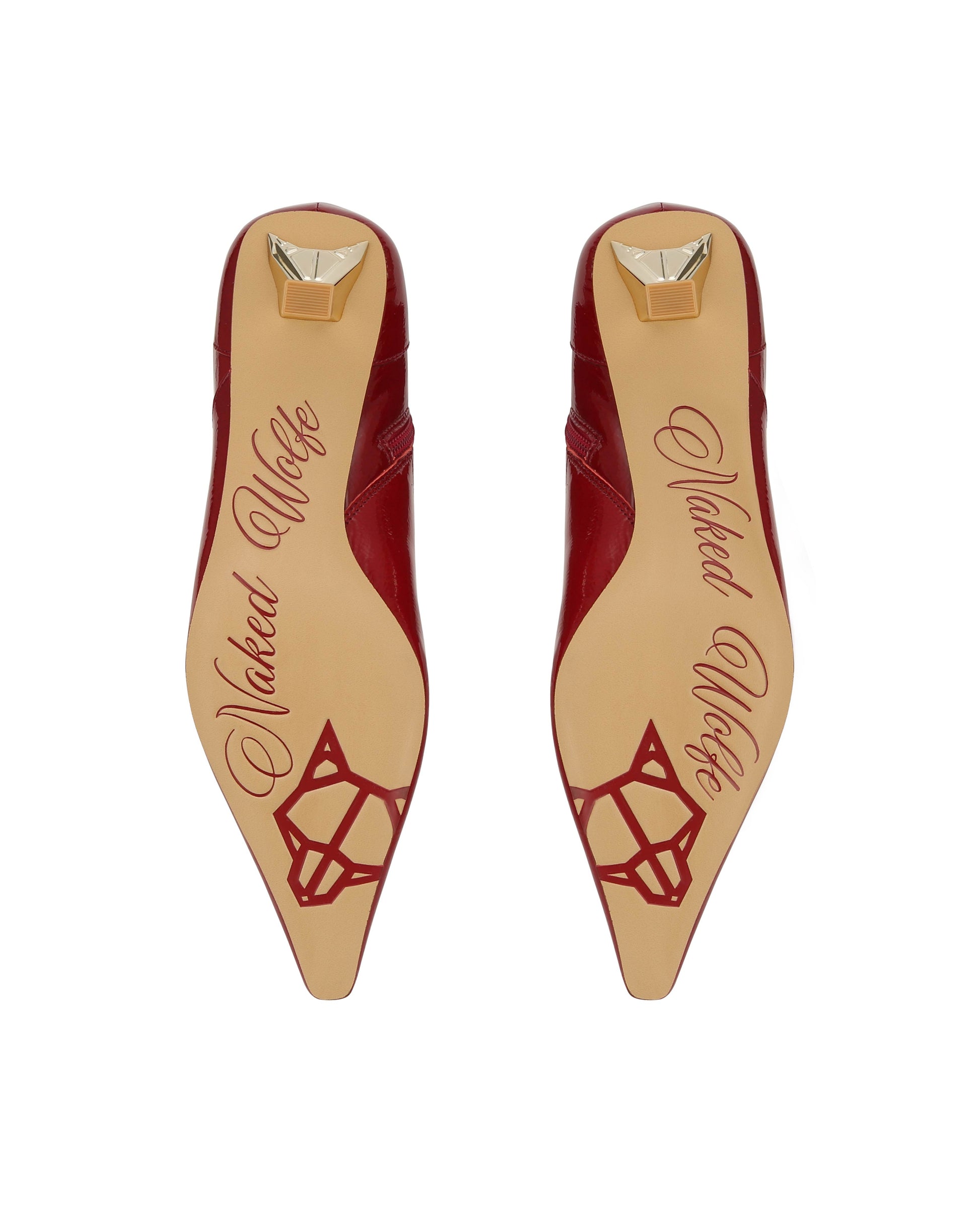 Introducing Tempting. Make a statement with our Tight Ankle Boot in Crinkle Red Patent Leather. Featuring a sleek 5cm heel and a pointed toe, these bold boots combine high fashion with a vibrant finish. The crinkle effect adds a unique texture, while the snug fit around the ankle ensures a chic silhouette. Perfect for adding a pop of color to any outfit, these boots are both eye-catching and stylish.