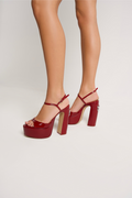 Step into glamour with our latest peep toe heel, Fire. Boasting a towering 13cm heel paired with a 4.5cm platform for stability and comfort. This shoe features a sleek and sophisticated curved shaped dress heel design. Perfect for special occasions or making a statement, it combines elegance with a touch of exotic flair. Elevate your style with this striking peep toe heel, designed to turn heads wherever you go.