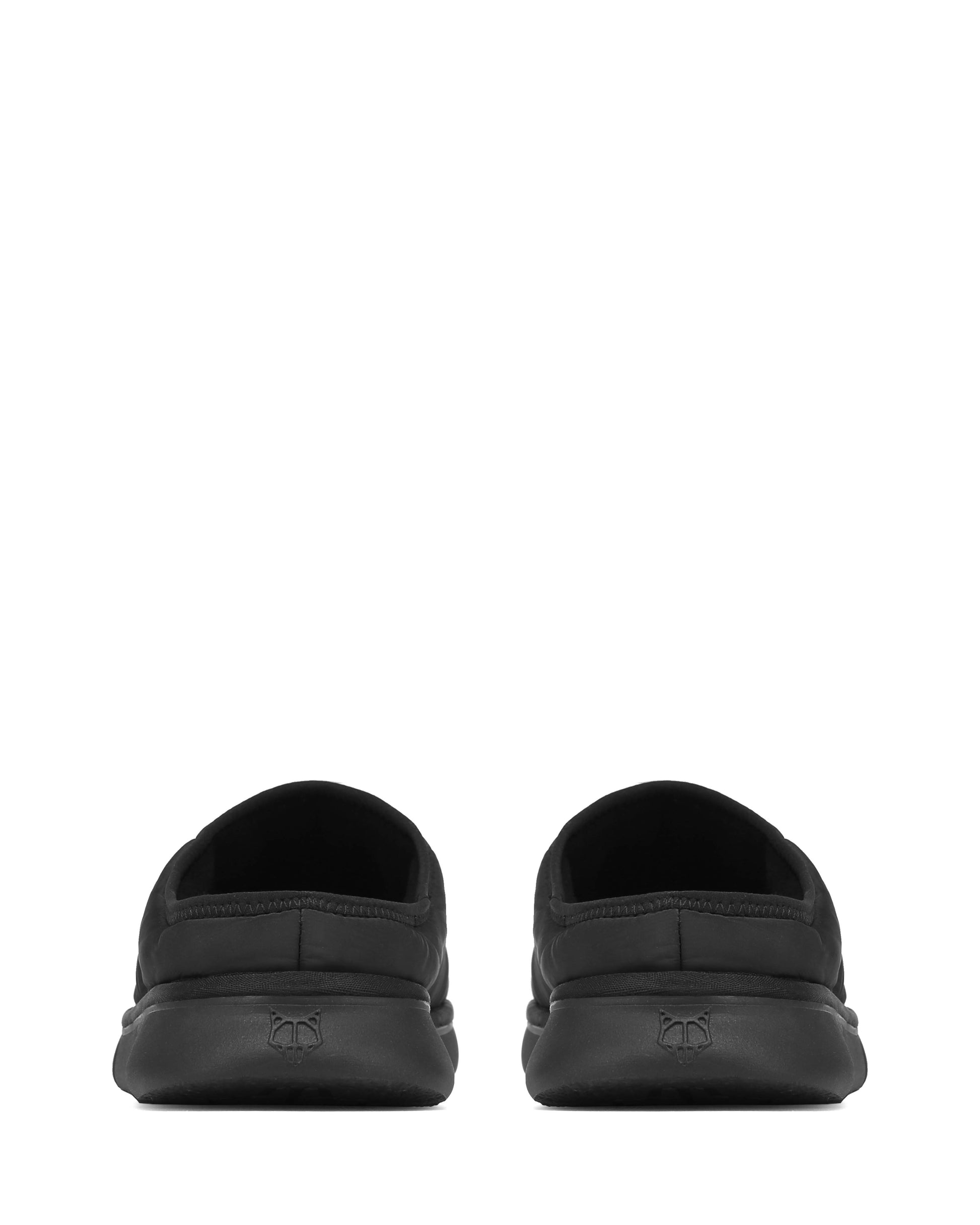 Montana, the closed toe puffer slide made with toweling lining and waterproof nylon upper featuring the famous Wolfe Head logo on the toe.