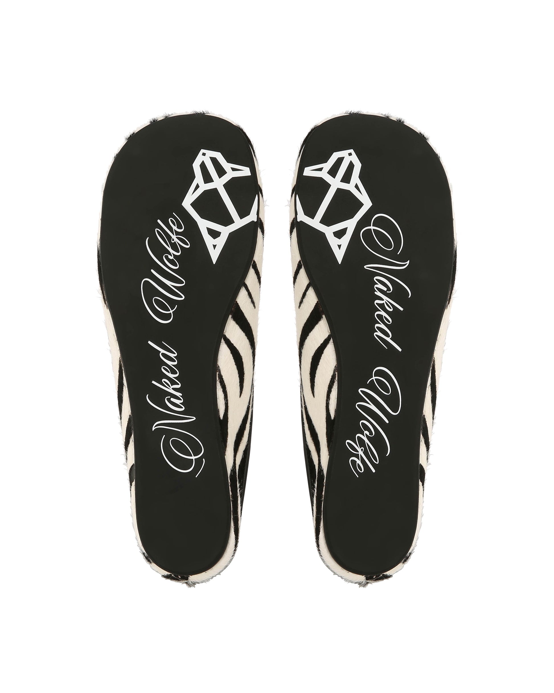 Experience luxury with Pippa, our asymmetrical slip-on ballet flat featuring a 4mm outsole and a leather insole. Crafted from premium zebra calf hair, it includes an elegant elastic detail across the instep for a perfect fit.