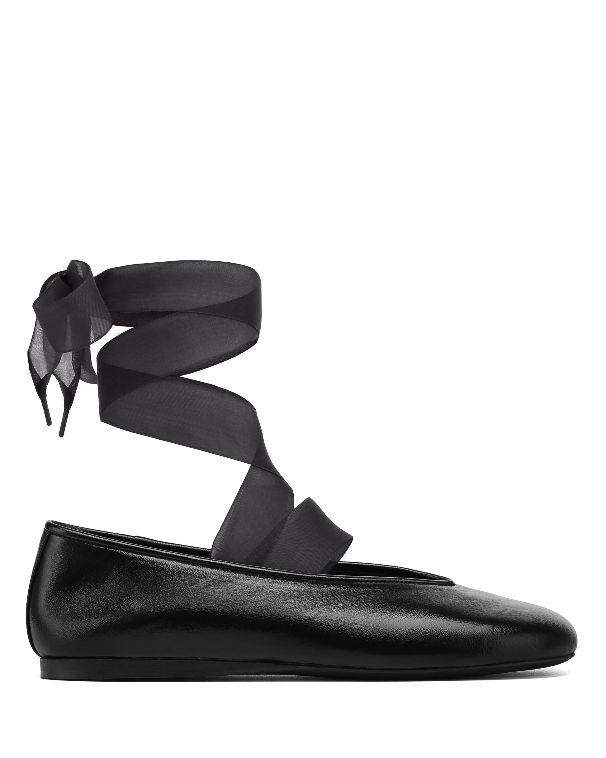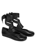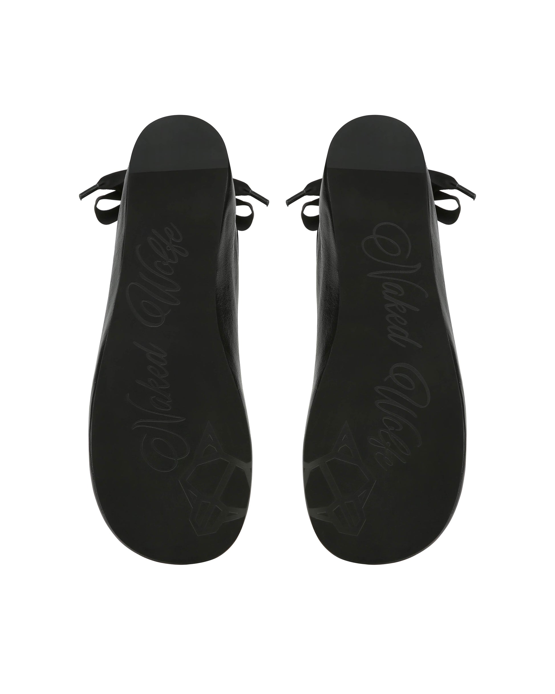 Experience luxury with Purr, our asymmetrical slip-on ballet flat with a detachable and interchangeable ribbon leg tie, featuring a 4mm outsole and a leather insole. Crafted from premium black leather.