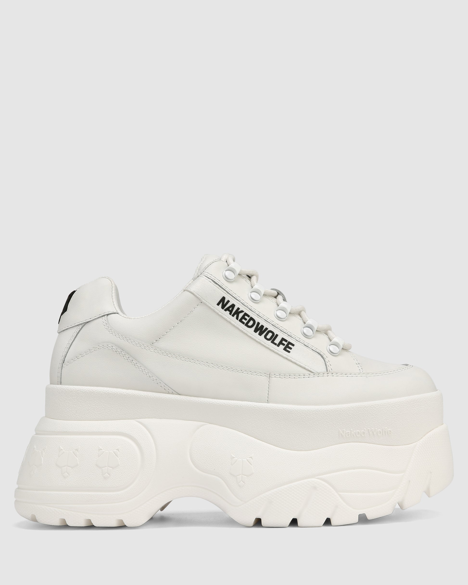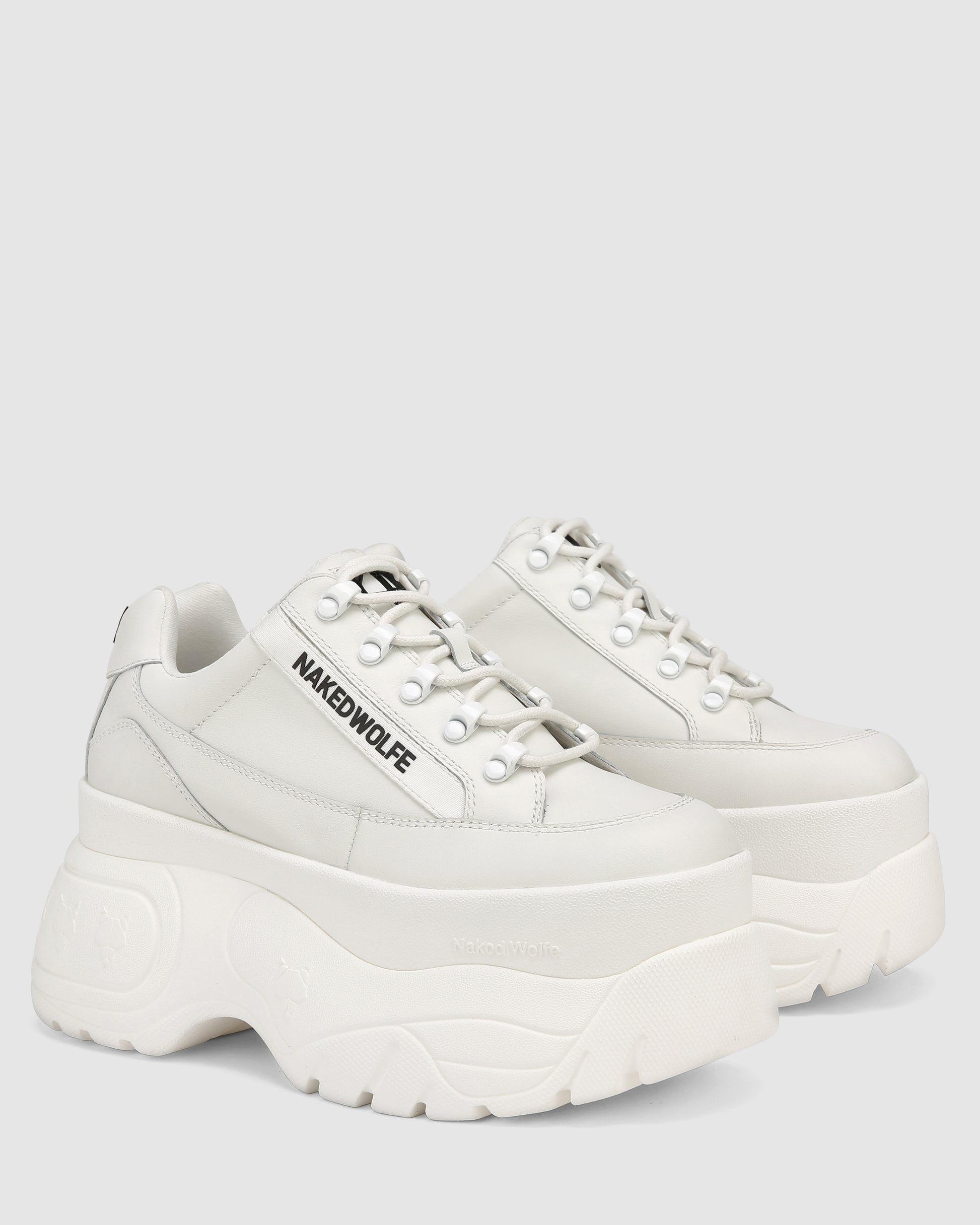 // THE 2.0 // The Mega platform sneaker. The 90’s inspired platform sneaker features a 9cm super soft sole. Featuring the famous Naked Wolfe “Wolfe Head” Plaque and Naked Wolfe logo tape.