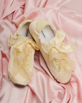Meet Adorable: our stylish ballet sneaker blending silk satin and suede with a removable wolfe head logo. Features distinctive two-tone ribbon laces with extras included. Effortlessly chic in pastel yellow satin. We recommend using our protective water and stain repellent which can be purchased on our website.