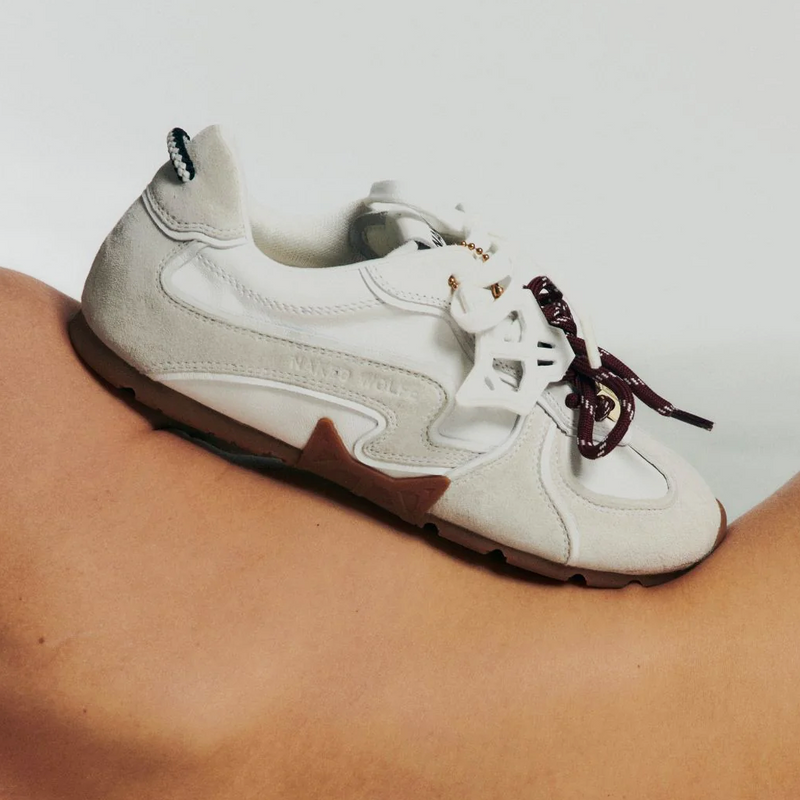 The original Naked Wolfe silhouette, stripped back to its cleanest expression. Premium white suede and leather upper, double lacing system, and the signature removable wolfe head charm that started everything. Order half a size up.