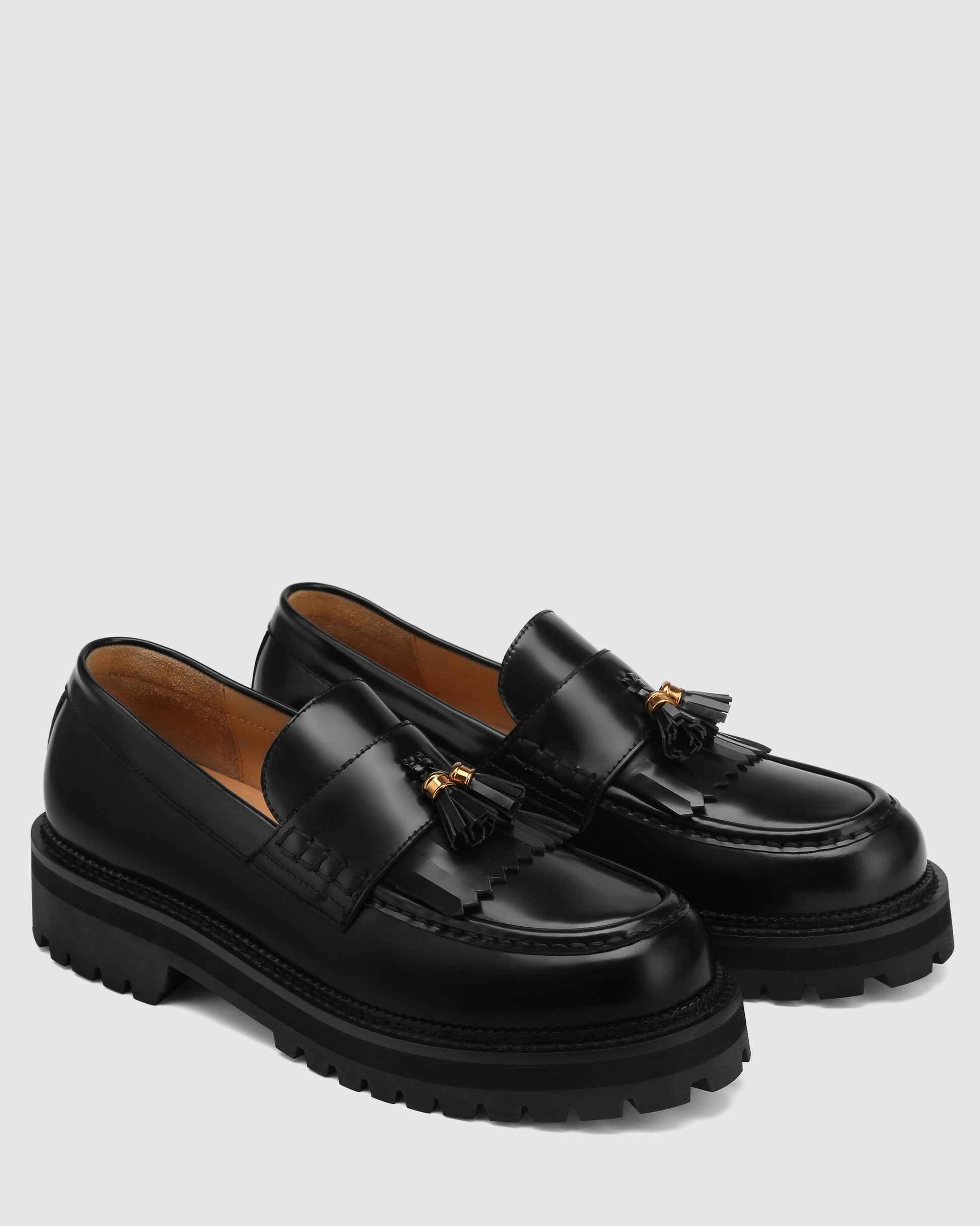 Introducing BANTER by Naked Wolfes, a modern twist on classic elegance. These shoes feature a box leather upper that not only exudes sophistication but also promises longevity. With a classic fringe and toggle loafer design accented by metal keepers, BANTER brings a touch of timeless style into the contemporary world. The leather insole provides unparalleled comfort, while the rubber outsole tread ensures secure footing, whether you're strolling through the city streets or making a statement at a formal event. Elevate your footwear collection with BANTER.