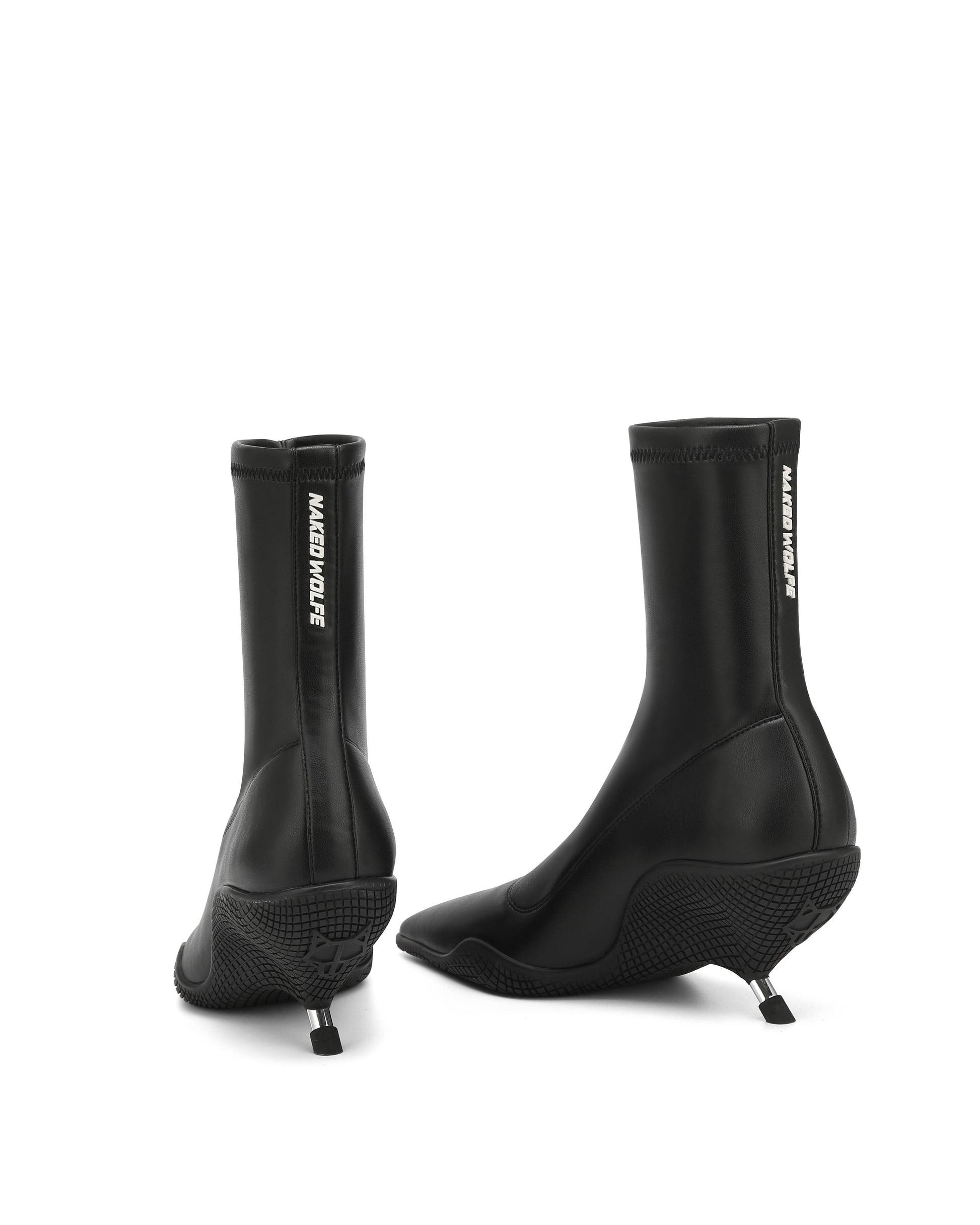 Experience ultimate comfort and style with the Dive Black Stretch boot. With an ankle height and a new 70mm sporty custom NAKED WOLFE designed heel, these boots are the perfect addition to your wardrobe. Embrace the sleek black stretch design and elevate your fashion game.