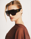 Meet the Kim Brown — understated and bold, these Naked Wolfe oversized sunglasses blend warm brown acetate frames with tinted brown lenses. Our signature Wolfe foil temple emblem sits at the heart of the design, delivering attitude in every detail. Full UV400 protection with a Category 3 lens filter and lightweight construction built for all-day wear. Available for worldwide delivery.