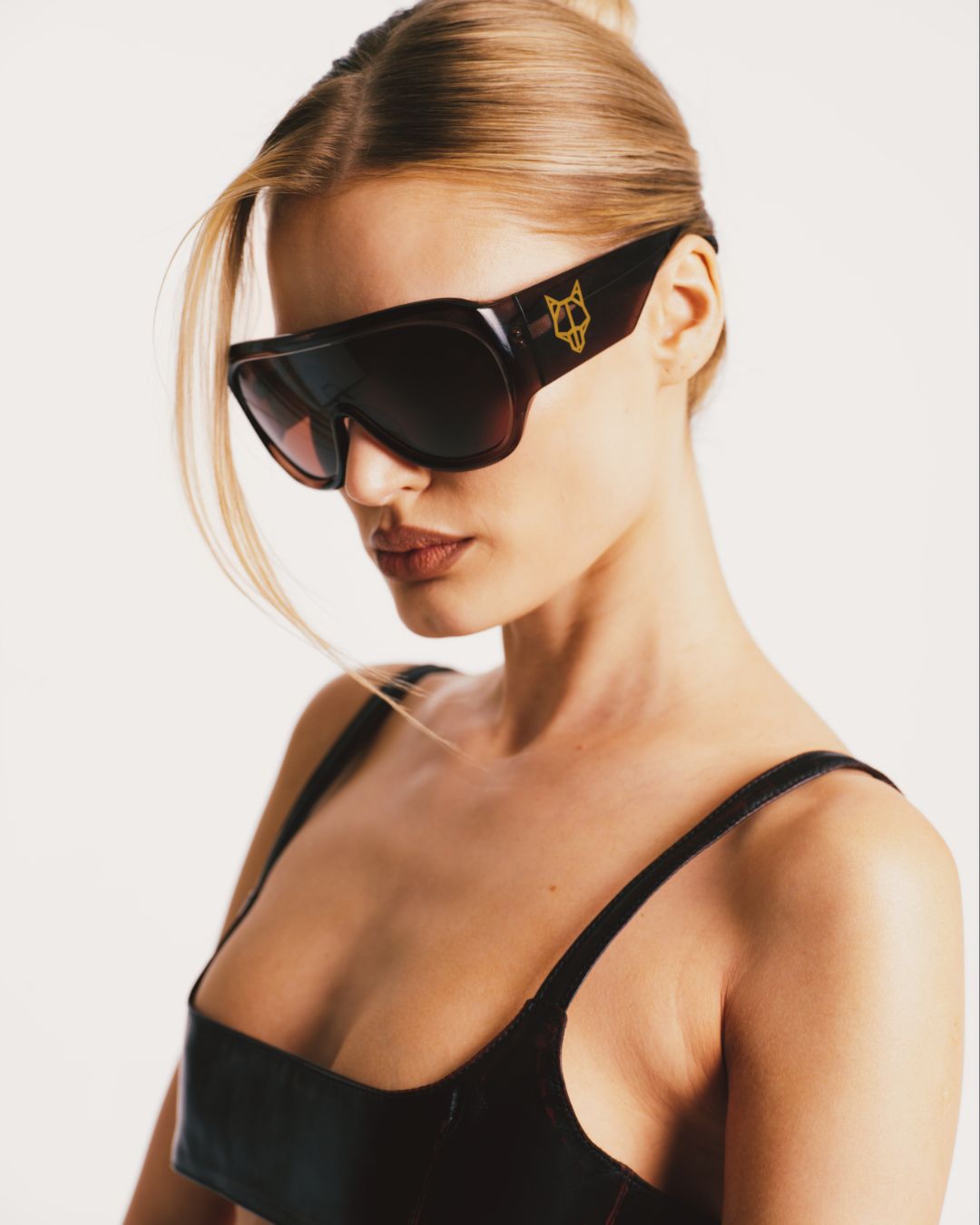 - Naked Wolfe foil logo on temples
