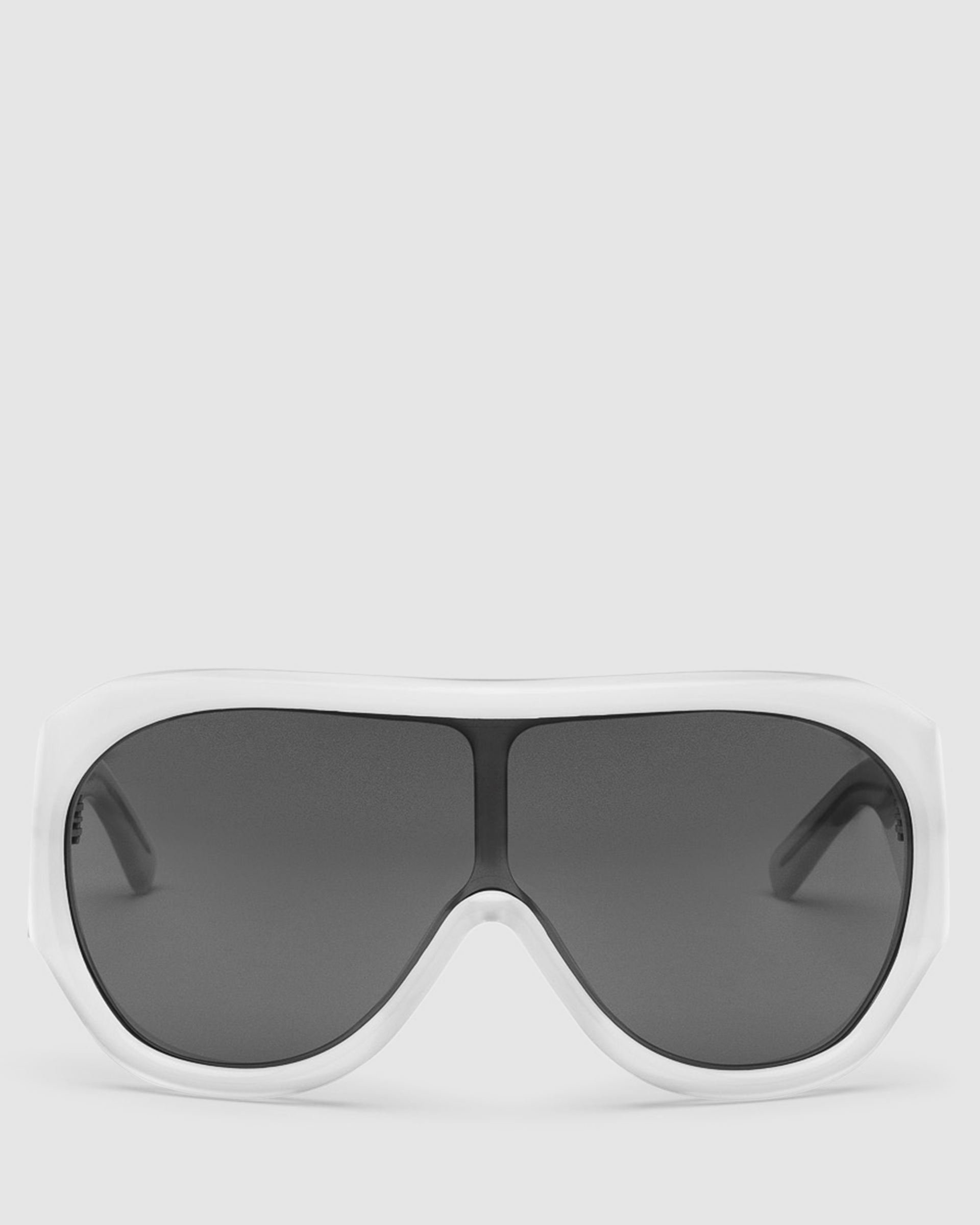 Discover the Kim Ice Sunglasses, the latest refined addition to our curated collection. These distinguished oversized frames feature immaculate ice toned acetate construction paired with sophisticated black lenses. Each temple is elegantly adorned with our iconic Wolfe head foil emblem—a mark of exceptional quality. Meticulously crafted from premium acetate and offering complete UV protection, these sunglasses seamlessly blend bold aesthetics with superior functionality for the discerning individual.