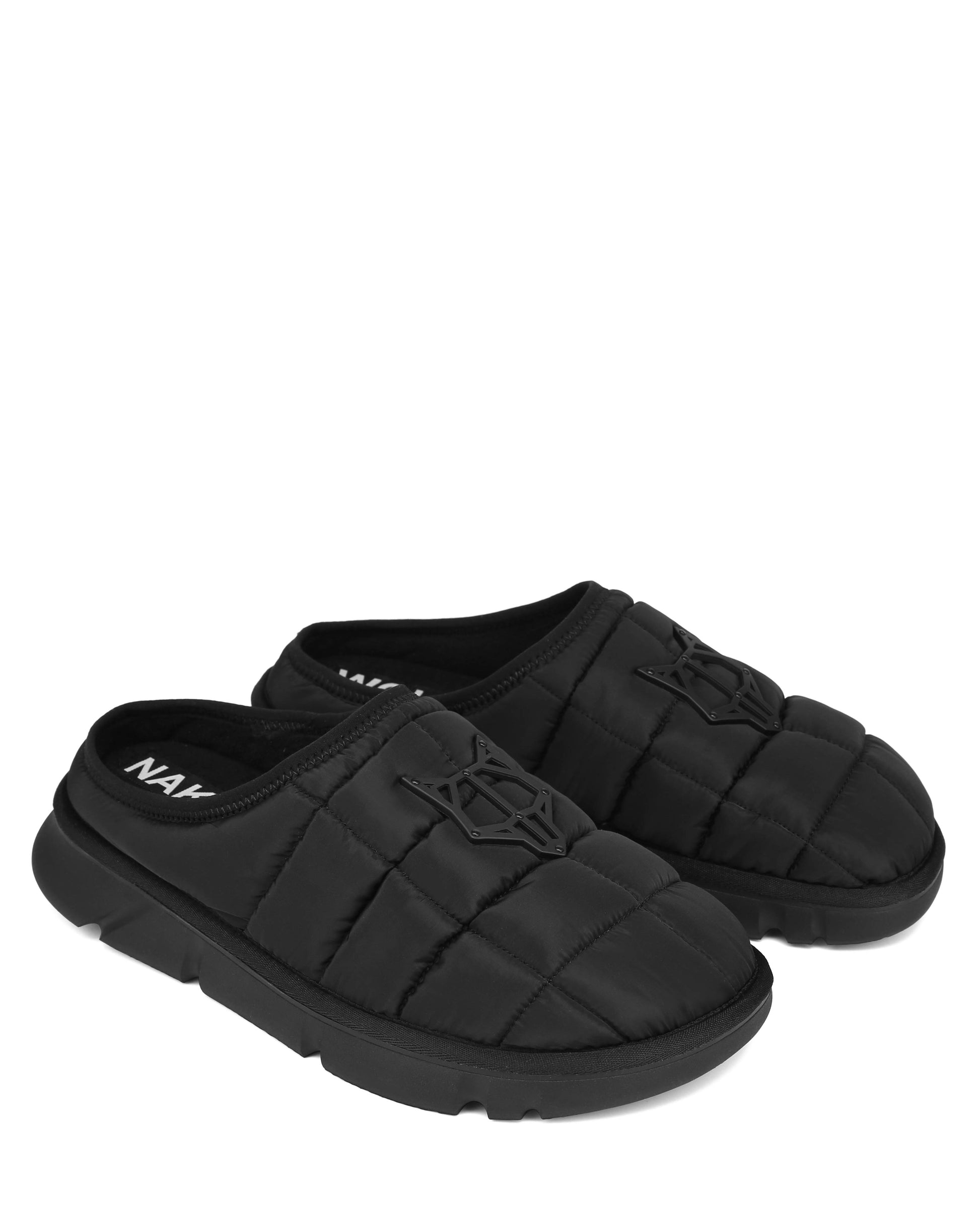 Montana, the closed toe puffer slide made with toweling lining and waterproof nylon upper featuring the famous Wolfe Head logo on the toe.