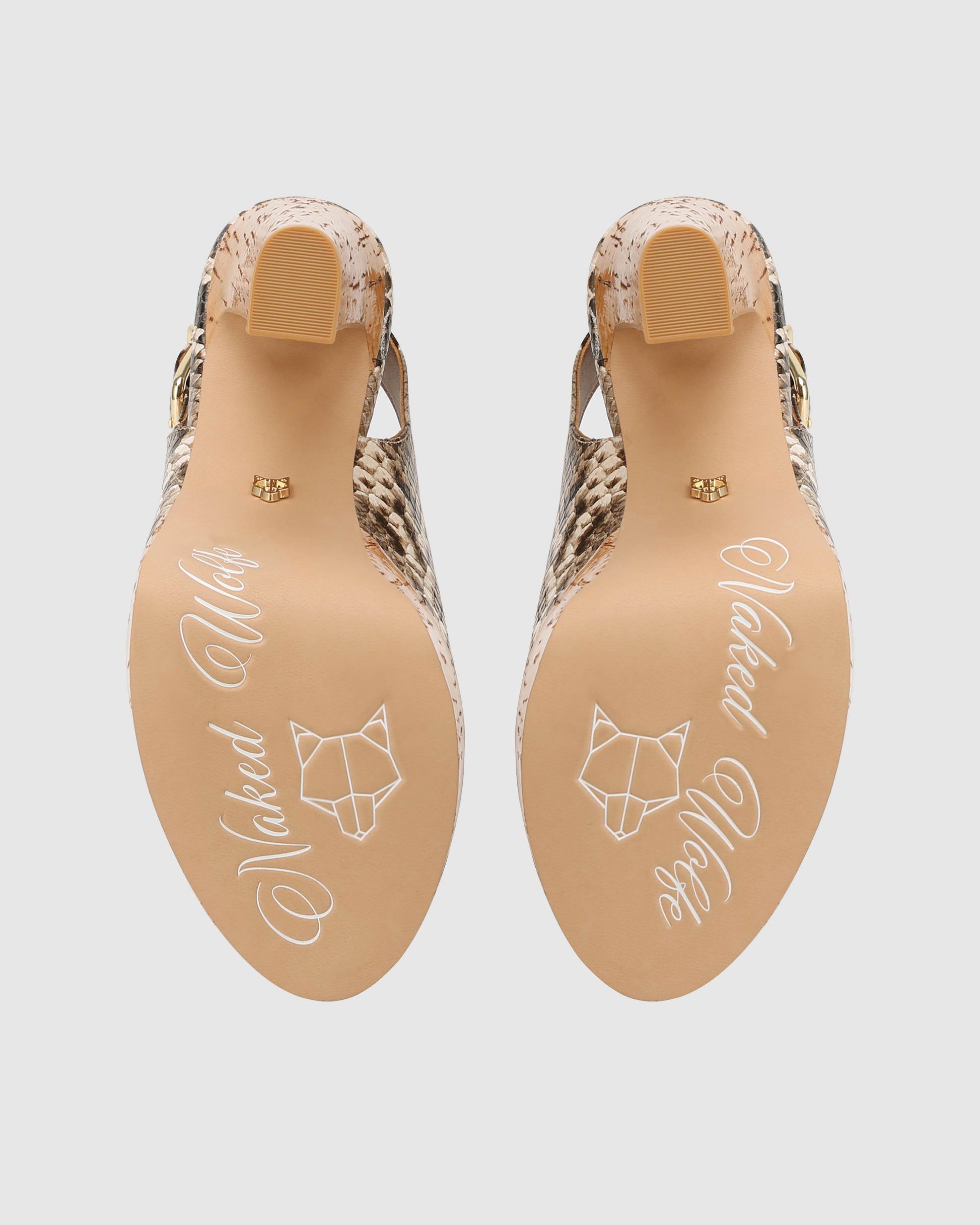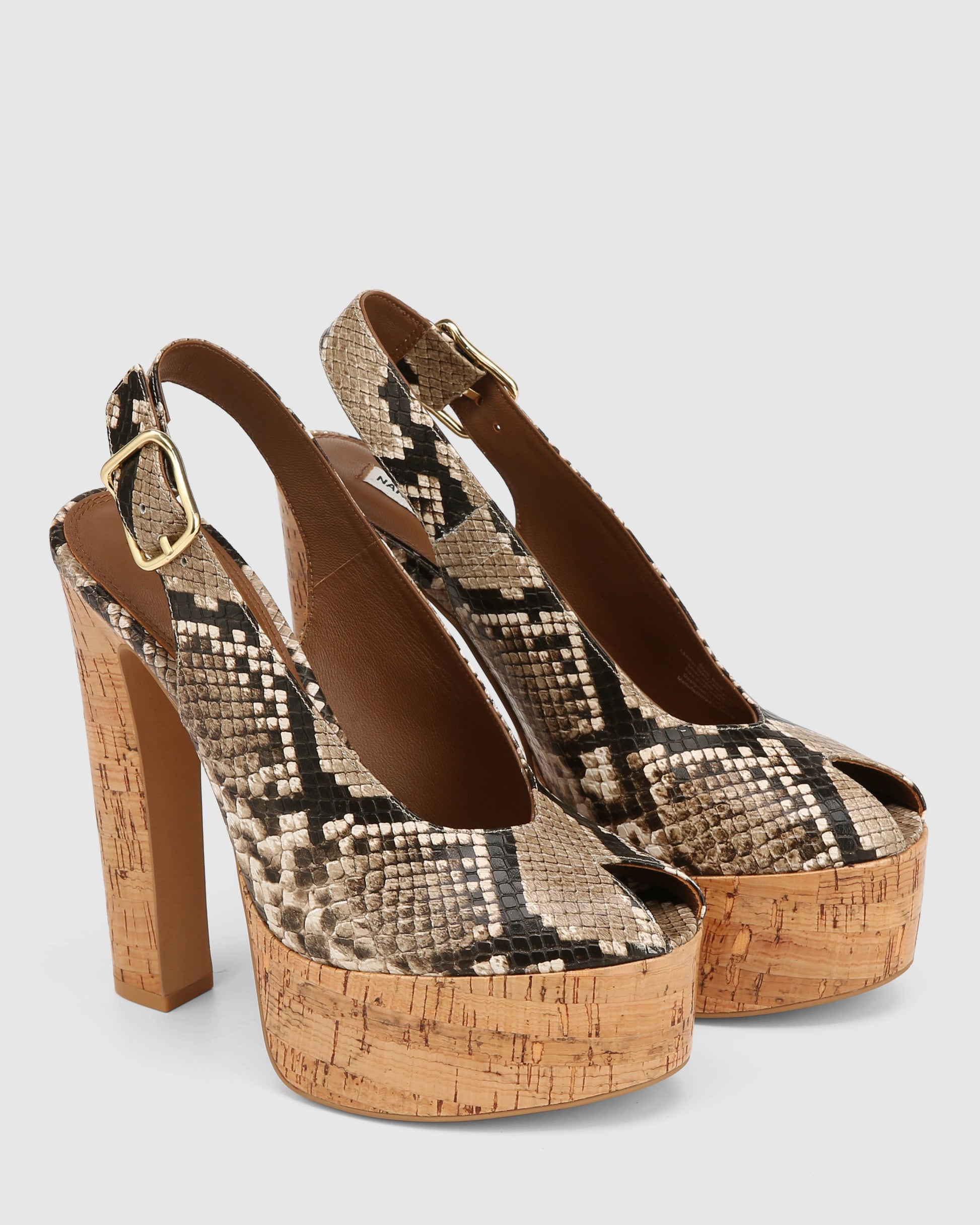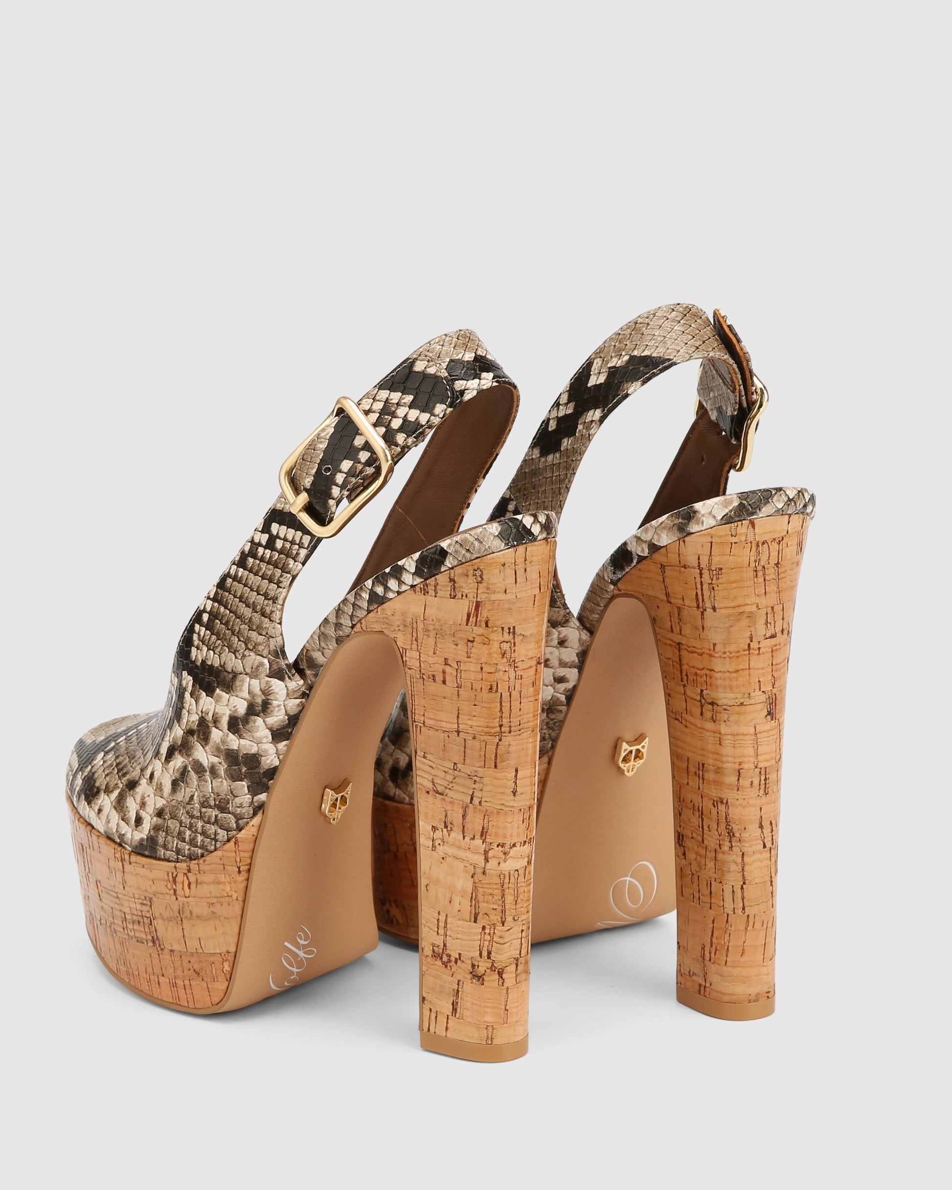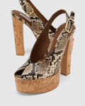 Rare, our brand new clog heel with a peep toe design is the perfect addition to any summer look. This sling back upper is made of top grade luxury pony hair. The platform and heel are wrapped in a cork wrap.