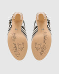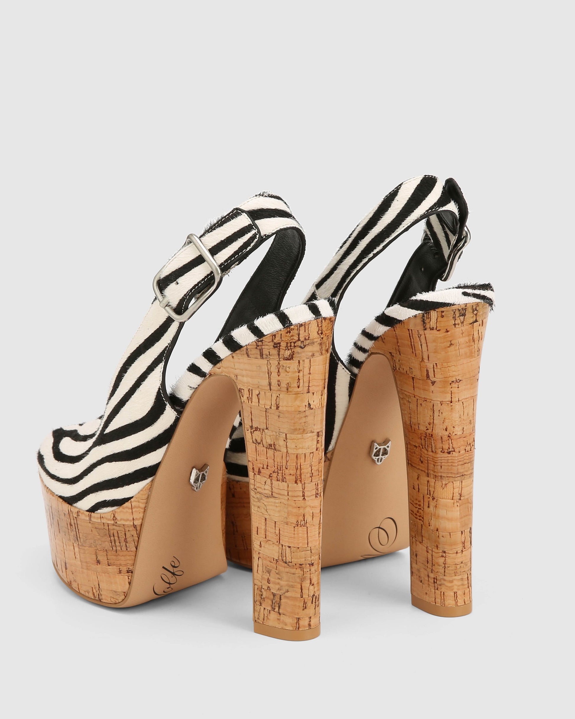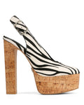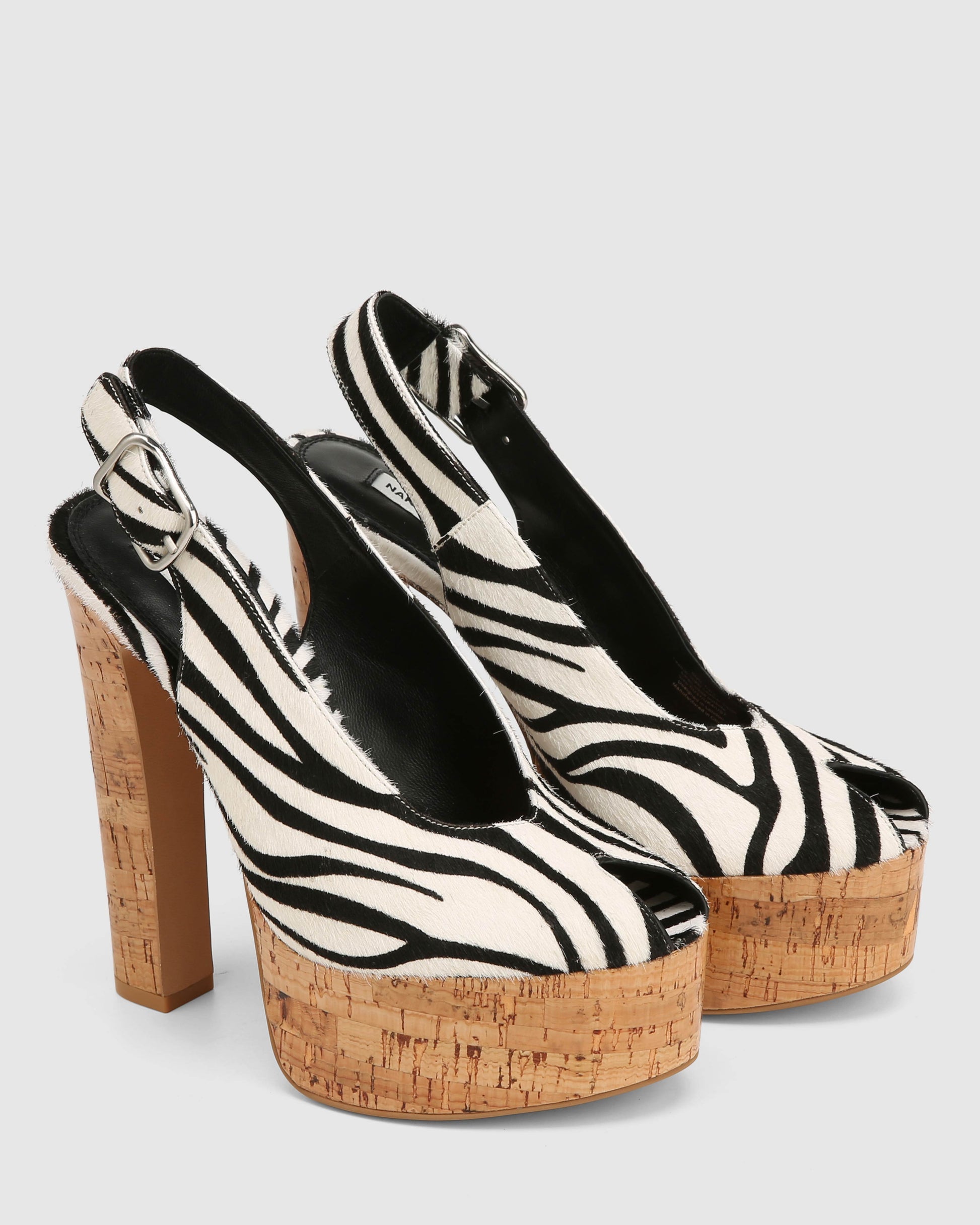 Rare, our brand new clog heel with a peep toe design is the perfect addition to any summer look. This sling back upper is made of top grade luxury pony hair. The platform and heel are wrapped in a cork wrap.