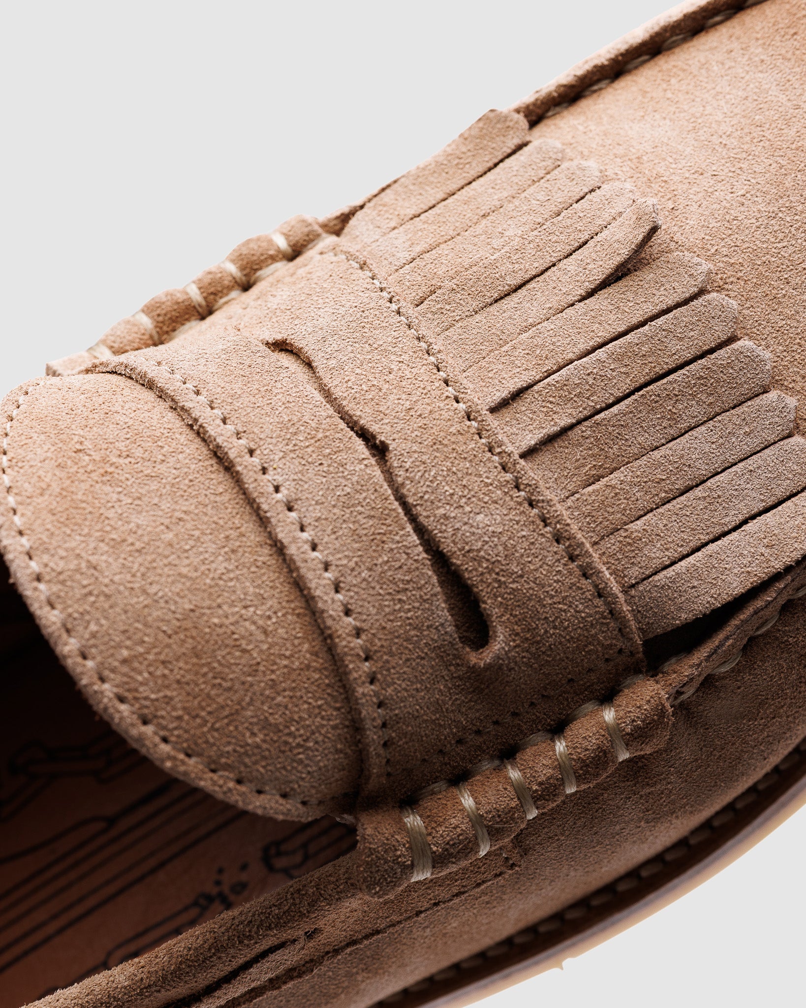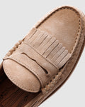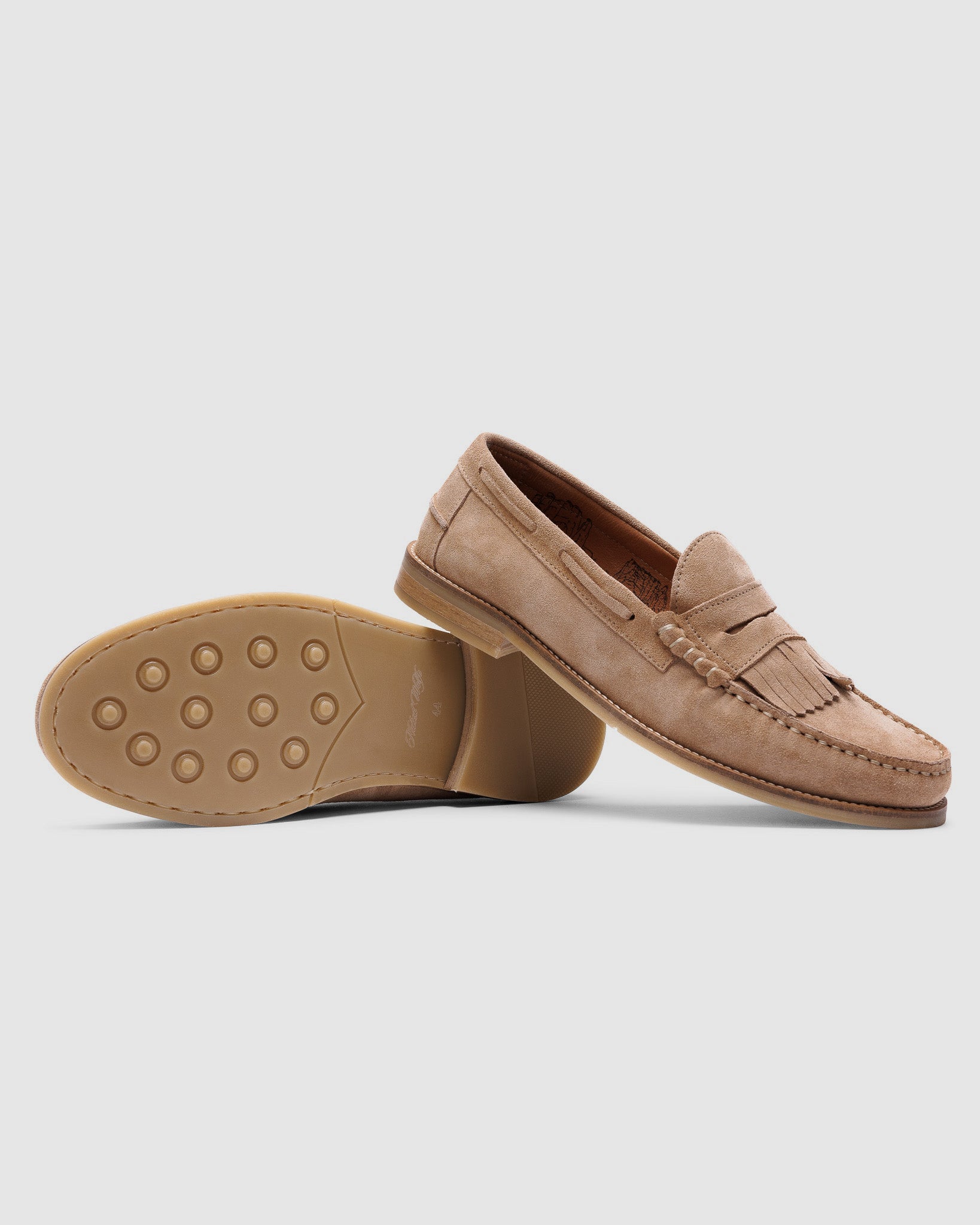 Inspired by the charm of a small seaside town in Italy, Ravello is the latest loafer release for Spring/Summer 2025. This new silhouette features our signature fringe and penny loafer trim, reimagined with a lower profile heel and a brand new custom rubber outsole for added comfort and durability. Fully lined in leather, Ravello is crafted from premium Italian suede and offered in three rich Italian leather colorways.